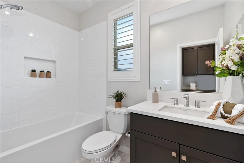 The first level features a private bedroom with a full bathroom and its own enclosed patio, making it ideal for guests, multigenerational living, or a quiet home office. The second level showcases soaring ceilings and an open, light-filled floor plan. This level includes an additional bedroom and full bathroom, a modern kitchen with stainless steel appliances, a dining area, and a bright living room that opens to a large balcony—perfect for entertaining or relaxing outdoors.The third level offers two additional bedrooms and two full bathrooms, including a luxurious primary suite with a spacious walk-in closet and a soaking tub. This floor also features an additional balcony and a conveniently located laundry room.Residents enjoy access to resort-style amenities, including a pool, spa, clubhouse, basketball court, picnic areas, and direct access to the Lake Forest Sports Park. Located adjacent to the Lake Forest Civic Center, the home offers year-round community events just steps away, along with close proximity to shopping, dining, and everyday conveniences. This exceptional home blends modern design with a prime location—an opportunity not to be missed.