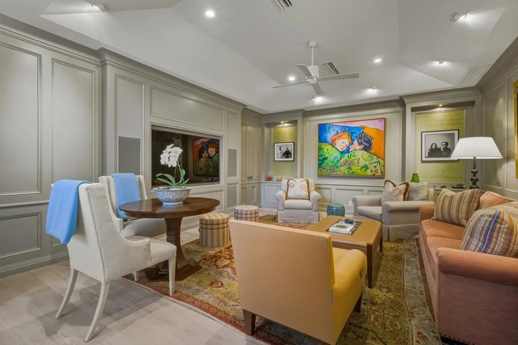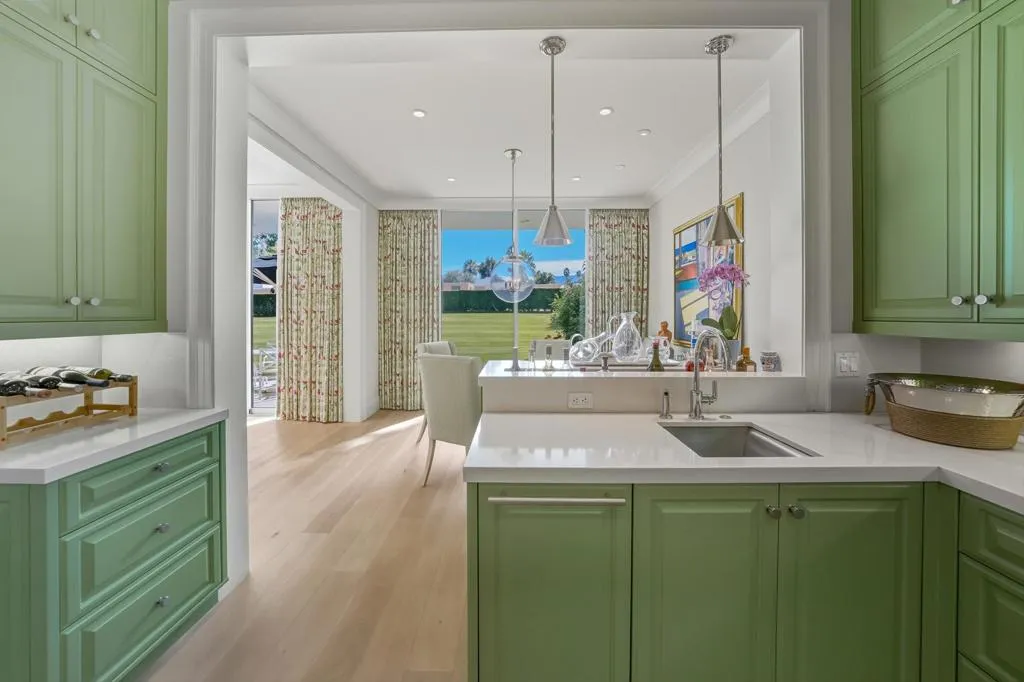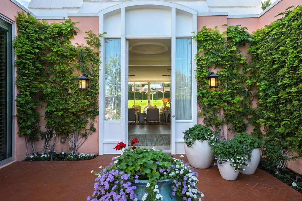 A sophisticated blend of iconic Hollywood Regency architecture and modern luxury, this beautifully reimagined residence is located within the renowned, historically designated Marrakesh Country Club, a celebrated John Elgin Woolf enclave. Exquisitely curated by the highly acclaimed Chicago-based TOM STRINGER DESIGN PARTNERS for effortless desert living, this home offers a refined yet comfortable atmosphere with luxurious upgrades throughout. The interior has been renovated with impeccable attention to detail, featuring wide oakwood flooring, recessed lighting, custom millwork and elegant crown moldings. The open-concept floor plan allows for seamless flow between the living, dining, and kitchen areas - ideal for entertaining or relaxed everyday living. The chef's kitchen is both stylish and functional, appointed with premium Wolf and Miele appliances, custom cabinetry, and a spacious center island. Expansive sliding doors invite natural light and open to a tranquil greenbelt setting with beautiful southern mountain views, enhancing the home's indoor-outdoor lifestyle. Outdoor spaces are perfectly suited for dining, relaxing, and enjoying the serene desert surroundings. The residence offers three generously sized bedrooms, each positioned to provide privacy and comfort. The primary suite serves as a peaceful sanctuary, featuring a spa-inspired bathroom with custom cabinetry and a seamless curbless shower with designer finishes, along with a custom-fitted walk-in closet. Both guest suites feature luxurious en-suite baths and direct access to the front courtyard, with one suite thoughtfully reimagined as an elegant den/TV room. Notable improvements include a newer foam roof (2021), HVAC system (2022), double-pane sliders in all rooms, a water shut-off system, complete back patio tile restoration (2025) and in-ground exterior patio lighting (2025) and a professionally redesigned front courtyard showcasing climbing vines and decorative planters with flowers. Residents of Marrakesh enjoy an exceptional lifestyle with access to 14 pools and spas, golf, tennis, pickleball, bocce ball, and a beautifully renovated clubhouse with fine dining, a fitness center, and a vibrant social calendar. Just minutes from El Paseo, Palm Desert's premier destination for luxury shopping and dining, this residence presents a rare opportunity to own this exceptional home in one of the desert's most iconic and coveted communities.