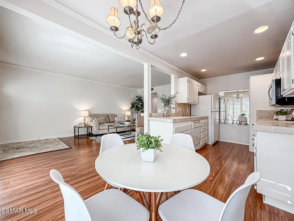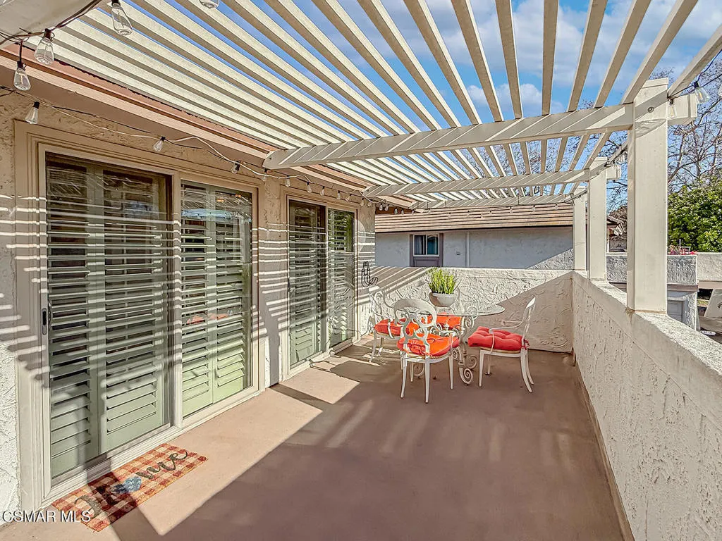 Tastefully Updated LIGHT & BRIGHT Condo in a Prime Westlake Village Location! Set within the ever-popular Village Green community, this thoughtfully updated 2-bedroom, 1-bath condo delivers a relaxed, low-maintenance lifestyle in one of Westlake Village's most coveted locations. With Westlake Commons just around the corner, everyday conveniences and weekend indulgences are all within easy reach--renowned restaurants, boutique shopping, a neighborhood winery, and miles of scenic trails for walking and biking are practically at your doorstep!Inside the home you are greeted by upgraded STONE flooring at the Entry which precedes the open Living Room which boasts UPGRADED wood-like flooring that continues into the Dining Room and both bedrooms. The roomy Dining Room is SUPER BRIGHT from a WALL of DUAL-paned windows with plantation shutters and flanks the galley Kitchen which has been tastefully updated with STONE-tile countertops & backsplashes, a double-sink overlooking the Living Room, a 4-burner gas range beneath a stainless-steel Whirlpool microwave, and a tucked away IN-UNIT stackable washer/dryer! Both bedrooms are spacious, with one offering a WALK-IN closet with BUILT-IN organizers and the other providing a closet with sliding mirrored wardrobe doors. The bathroom provides a tile-walled tub shower and built-in vanity, neighboring PLENTY of closet storage space in the hallway.A standout feature of the home is the oversized private patio, positioned to take in peaceful views--an inviting outdoor extension ideal for relaxing evenings or quiet mornings. Parking is effortless with a private garage + a reserved parking space, and guest parking throughout the community. You will love your BRAND-NEW HVAC units (July 2025) and the resort-like environment which showcases TWO heated pools + spa, basketball and shuffleboard courts, and beautifully landscaped grounds that feel more like a neighborhood park than a condo complex. The HOA includes water, trash service, and interior and exterior pest control, simplifying ownership and enhancing ease of living! Comfortable, convenient, and exceptionally located, this home offers a rare chance to enjoy the best of Westlake Village--where nature, recreation, and everyday essentials come together just minutes from home!