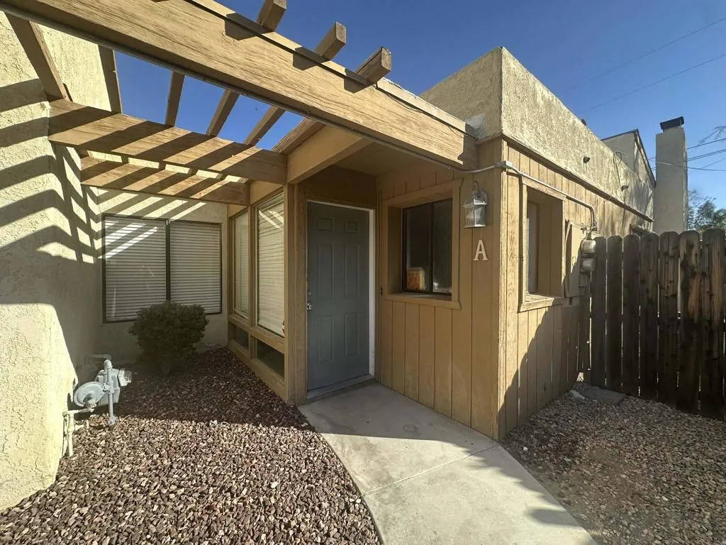 This beautifully maintained 2-bedroom, 2-bathroom home is perfectly situated within walking distance of top-rated Washington Charter School (in the district boundaries) and El Paseo. Freshly painted and tile throughout (no carpet at all) Each bedroom is en suite with its own bathroom and walk-in closet. The spacious living room features a cozy fireplace, and the home is equipped with a central HVAC system for year-round comfort. Enjoy tile flooring throughout, including the bedrooms, as well as granite countertops in the kitchen, in-unit washer and dryer, and an attached 2-car garage. The private yard is perfect for relaxing or entertaining, and pets are welcome. Water and trash included. Tenant pays for electricity and cable/internet. Available early March for a long-term lease. Don't miss the opportunity to lease this inviting and well-located desert home!