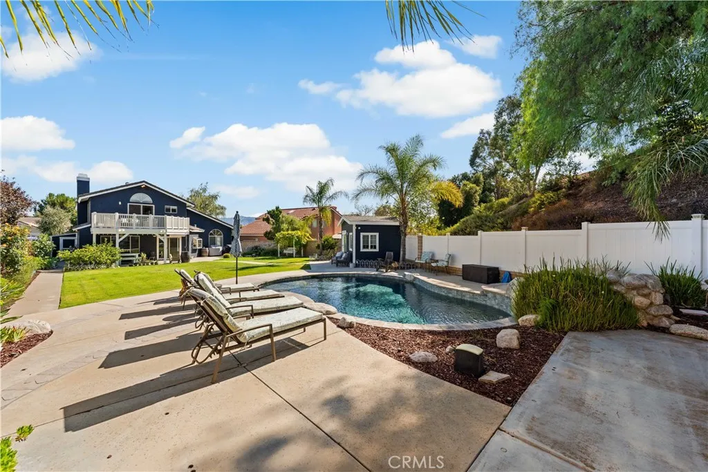 Very Motivated seller with over $130,000 in price cuts! Make an offer on this gorgeous home before it's gone! Set on one of the largest lots in the coveted Circle J Ranch community, this exceptional home offers over 10,000 sq ft of space designed for unforgettable entertaining and comfortable everyday living. The resort-style backyard is a true showstopper, featuring a sparkling pool with a new energy-efficient pump, waterfall, updated tile, and PebbleTec finish, plus a versatile pool house perfect for a gym, game room, or potential future ADU. A private basketball court, flourishing fruit and vegetable garden, no rear neighbors, new vinyl fencing, and a large side yard with storage shed gives plenty of room to park toys and more. Inside, the open-concept family room and kitchen invite connection with a cozy fireplace, oversized island, dual sinks, recessed lighting, and included appliances—refrigerator, washer, dryer, and even the pool table convey. The expanded primary suite offers dual walk-in closets, room for a sitting area or office, a private ensuite bath, and its own balcony overlooking the backyard. Additional highlights include paid-off Tesla solar, newer flooring and paint, ceiling fans throughout, smart home features, and generator-ready capabilities. With no HOA and no Mello Roos, this one-of-a-kind property blends energy efficiency, modern upgrades, and incredible outdoor amenities into a lifestyle opportunity you don’t want to miss.