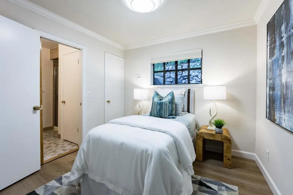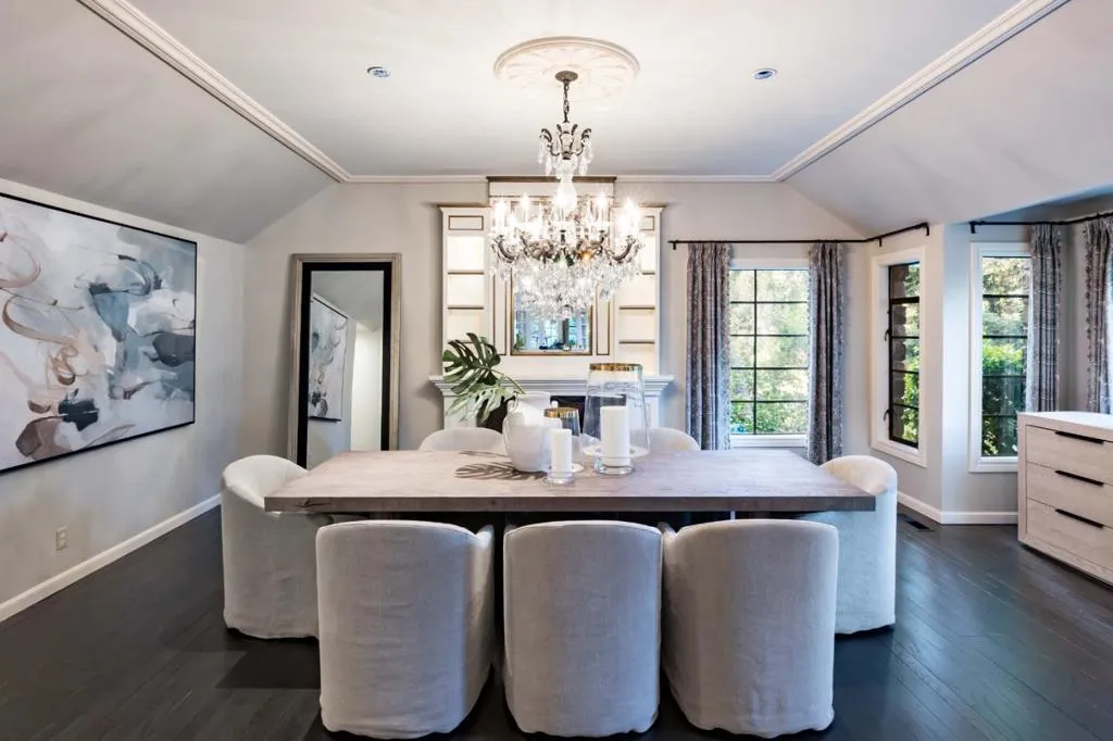 Shaded by towering redwoods and nestled beside the Palo Alto Hills Golf & Country Club, this exceptional Tudor estate offers a rare blend of grandeur, privacy, and natural beauty. Set on a full acre, the main home spans over 6,200 square feet of light-filled interiors with soaring ceilings, fine millwork, rich hardwood and tile floors, and expansive formal spaces ideal for entertaining. A walk-out family room and chef's kitchen with premium appliances provide comfort and functionality, while multiple fireplaces add warmth and charm. The flexible layout includes a bedroom that doubles as an office, and a luxurious primary suite. Multi-level, masterfully landscaped grounds feature a saltwater pool by a peaceful waterfall, an outdoor kitchen, fire pit patio, pool house with sauna and fireplace, and a separate 1-bedroom guest house. With AC, a 3-car garage, and a prized Palo Alto Hills location, this home offers the ultimate in private, elevated living.