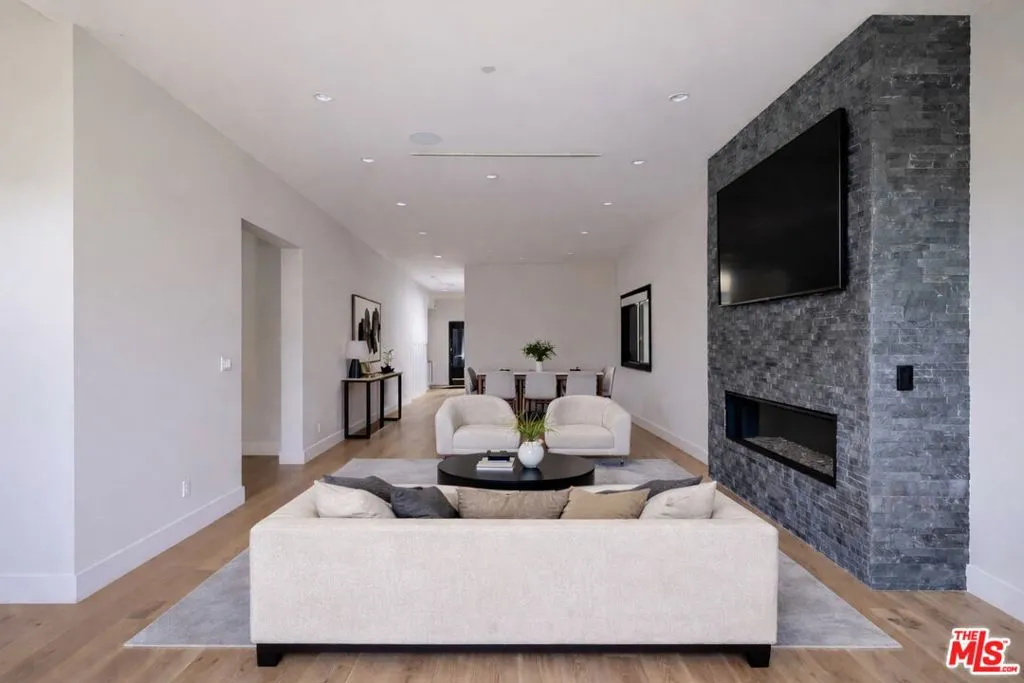 Welcome to this exceptional single-story Modern Farmhouse set on one of Beverly Grove's most coveted streets. Privately gated and hedged, this meticulously designed entertainers home reflects refined architectural intent and uncompromising craftsmanship throughout. A striking 9-foot pivot door opens to a beautiful light-filled living room with a statement fireplace, an expansive picture window, and wide-plank white oak floors. The kitchen and family room flow seamlessly through to an IPE wood terrace, creating an effortless indoor-outdoor lifestyle. Your resort-style grounds feature a newly completed pool and spa alongside a detached, fully permitted ADU/pool house with a kitchen and bathroom, ideal for guests, an office, or a retreat. Interior appointments include 10-foot ceilings, 8-foot solid doors, Emtek brass hardware, Jeld-Wen windows, Sonos audio, and a chef's kitchen with a stunning 12-foot island and bespoke cabinetry. The main residence offers three bedrooms and two and a half baths, complemented by a storage basement and a turnkey ADU with mini-split HVAC. A rare offering where timeless design, modern comfort, and privacy converge, crafted for those who value discretion, quality, and effortless living.