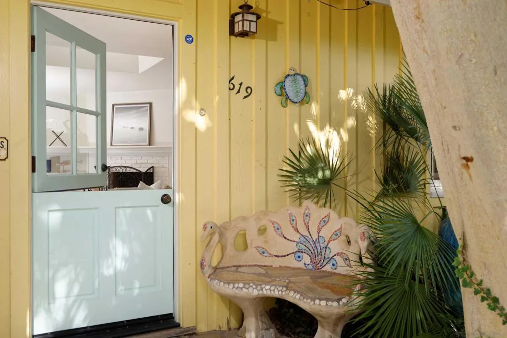 A short stroll to Wind N’ Sea beach, we are delighted to offer you a four bedroom, two and a half bath two story Euro inspired beach house of approximately 2560 square feet plus a one bedroom, one bath 740 square foot ocean view ADU/guest house built in 2018. The main house, designed by architect Claude Anthony Morengo has travertine floors, beautiful stone counters, French doors, custom windows and artisan touches throughout. There is a separate Zen room complete with stone mosaics and custom stained glass windows. The primary suite is on the main level with a spacious bath, walk in closet and hand painted murals and an oversized jetted spa tub. The cheerful country kitchen has a massive skylight, LG stainless steel appliances, a Fulgor six burner gas stove, and a large area for dining. The family room has built in cabinetry and bookshelves. Built in 2018 and designed by Jeanne Liem, the guest house has engineered wood floors, a breakfast bar, a gas fireplace in the living room and a bedroom and seating area that occupy the entire second floor. Outside is a loggia with space for a big dining table, BBQ and spa . The foliage is lush with a canopy of tress that will make you feel like you are on a Hollywood movie set. Come see this one of a kind property. Ideal for a primary residence or vacation home.
