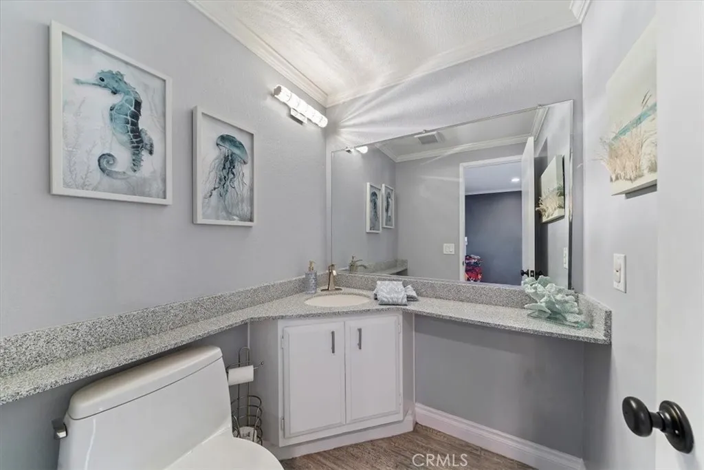 Looking for a low maintenance and comfortable TURNKEY home in a great location? Here is the opportunity to live in the sought-after Cypress Village; a wonderful & much desired community in Cypress with lovely neighborhoods close by. This abode is all you need to enjoy the good life in a home of your own. Have guests enter through a privacy gate into a quaint courtyard that welcomes visitors to this ideal two-bedroom, duel level floor-plan giving close to 1400 sq. ft. of living space. Upon entering, the living room provides ample room for entertaining, featuring a gas fireplace with shimmering crystals to enjoy along with the fire & a view of that charming courtyard and Manzanita Park. Enjoy time in the remodeled kitchen highlighted with upgraded countertops and glass tile back-splash, Gas stovetop & Stainless Steel refrigerator plus bar seating for a quick meal! Off the kitchen is an area for your dining needs and access to the rear yard. Convenient interior laundry room for the washer & dryer (included) and a newer hot water heater with expansion tank. The rear yard is easy to care for & provides rear of the home entry & direct access to the 2 car garage. On the way upstairs, you won't be able to miss the custom rod-iron stair railing along with the modern lighting that adds a touch of refinement. The primary bedroom is spacious and features two closets - 1 is a roomy walk-in and the other has upgraded mirrored doors. 2nd Bedroom is also ample provides all the space you need. The upstairs bathroom has been upgraded & has marble features in the shower/tub (tub is extra deep) and upgraded shower-head features. A new Moen Flo-Smart Water Monitor and Shutoff was recently added for piece of mind. This property also shines with many special touches: Central A/C, Elegant Crown Molding, Mounted TVs, Wood Shutters, Double-Pane Windows, Exterior key pad entry, Wrought-Iron yard gates, Recessed Lighting - all this....PLUS resort like Living! Cypress Village offers 3 Pools and sizable spa, Tennis Courts, Pickle-ball Courts, 3 Club houses and walking paths between the homes that are green and relaxing, a perfect place to walk your pup or get your steps in. Visitor parking is sprinkled generously around this property. Enjoy this quality OC location, close proximity to the local stores, freeways or enjoy close by beaches - Huntington, Seal and Sunset - minutes to Long Beach too. Here is the opportunity to live the OC life and resort lifestyle. The good life is waiting!