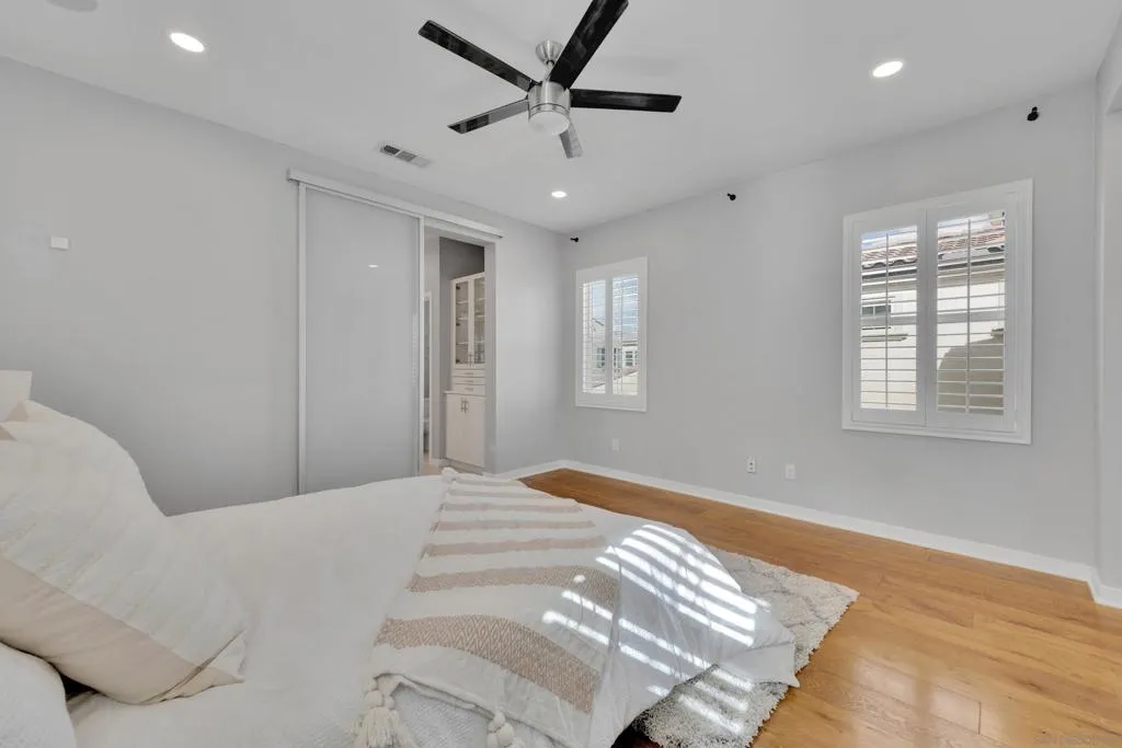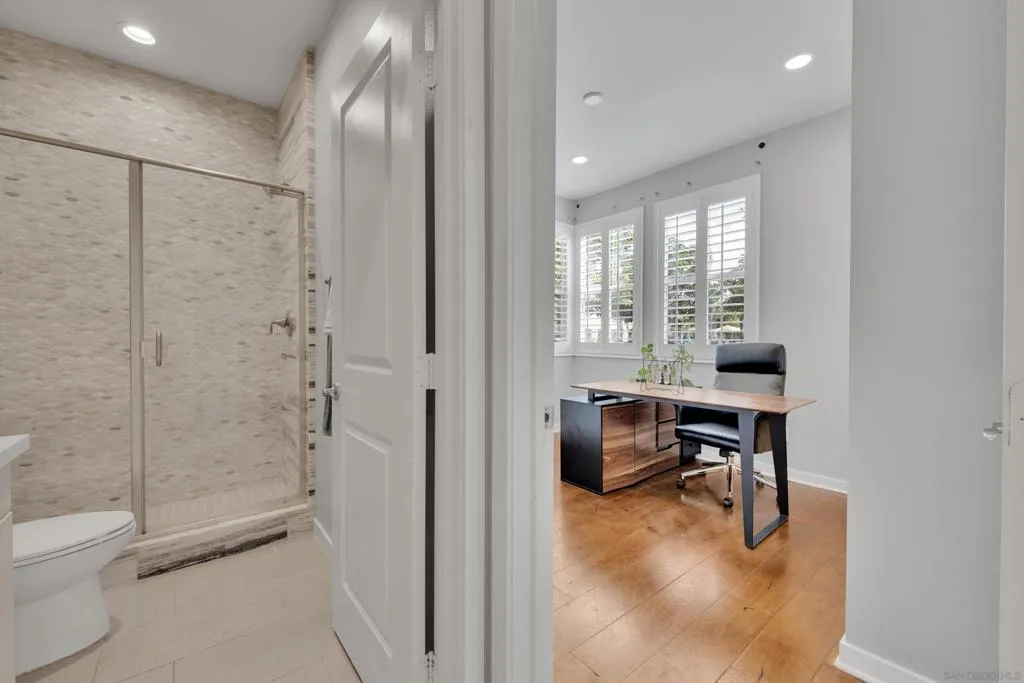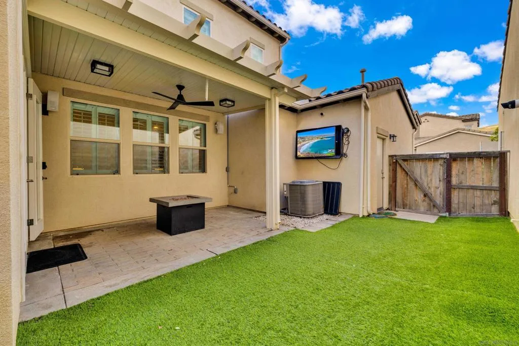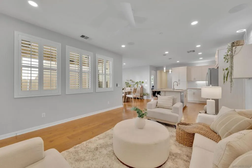 Welcome to this beautifully upgraded former model home in the highly desirable Village of Escaya. Reap the benefits of paid solar and real hardwood floors. A downstairs bedroom with a full bath features a walk-in shower ideal for guests, multigenerational living, or a home office. All 3 Bathrooms are stylishly upgraded with custom artisan tile. Ideally located directly across from the resort-style pool, lap-pool, recreation center, a huge community gym, and expansive park. This home offers the perfect blend of comfort, design, and community living. High-end finishes are showcased throughout, including custom plantation shutters on every window, modern cabinetry, quartz counters, full tile backsplash, and designer lighting. The open-concept kitchen, large island, and living areas provide direct access to a private outdoor space with TV. Providing a seamless flow for everyday living and entertaining. Upstairs, the spa-inspired primary suite offers a relaxing retreat with a luxurious bath and generous closet space. 2 1/2 Car Garage with extra built-in storage and space for a hobby. Take advantage of community organized workshops, socials, group workouts, and Holiday events multiple times a month. Walking distance to Escaya’s own K-6 Elementary School, dog parks, neighborhood dining, coffee shops, and market. Only minutes from Otay Ranch Town Center, Sesame Place, NICU Amphitheater, and major freeways. Enjoy Southern California Living at its Finest!