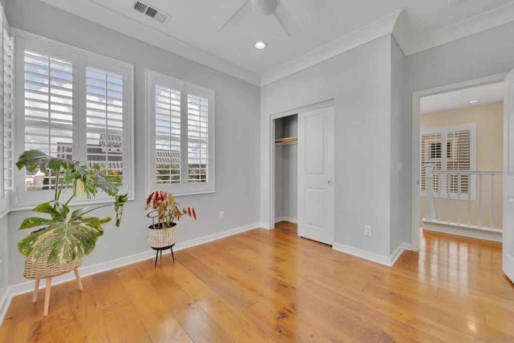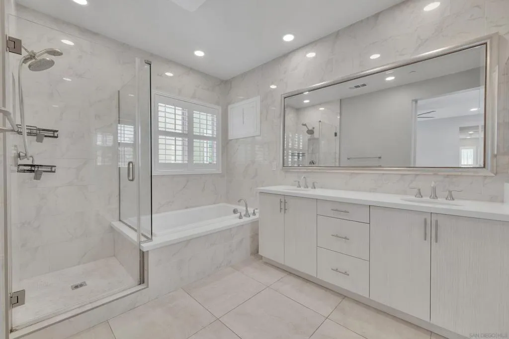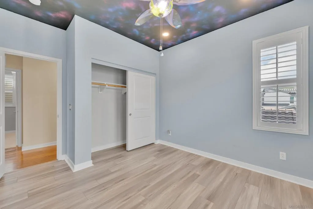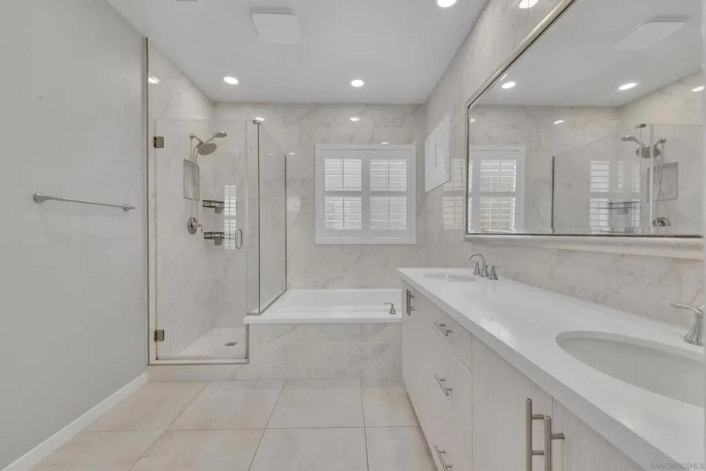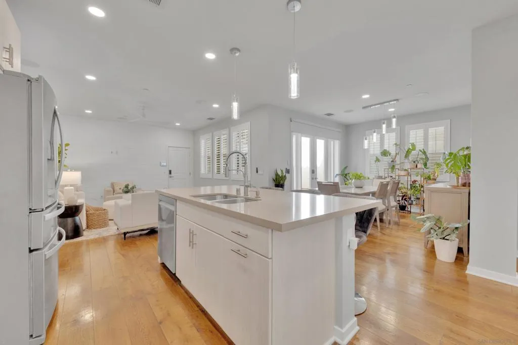 Welcome to this beautifully upgraded former model home in the highly desirable Village of Escaya. Reap the benefits of paid solar and real hardwood floors. A downstairs bedroom with a full bath features a walk-in shower ideal for guests, multigenerational living, or a home office. All 3 Bathrooms are stylishly upgraded with custom artisan tile. Ideally located directly across from the resort-style pool, lap-pool, recreation center, a huge community gym, and expansive park. This home offers the perfect blend of comfort, design, and community living. High-end finishes are showcased throughout, including custom plantation shutters on every window, modern cabinetry, quartz counters, full tile backsplash, and designer lighting. The open-concept kitchen, large island, and living areas provide direct access to a private outdoor space with TV. Providing a seamless flow for everyday living and entertaining. Upstairs, the spa-inspired primary suite offers a relaxing retreat with a luxurious bath and generous closet space. 2 1/2 Car Garage with extra built-in storage and space for a hobby. Take advantage of community organized workshops, socials, group workouts, and Holiday events multiple times a month. Walking distance to Escaya’s own K-6 Elementary School, dog parks, neighborhood dining, coffee shops, and market. Only minutes from Otay Ranch Town Center, Sesame Place, NICU Amphitheater, and major freeways. Enjoy Southern California Living at its Finest!