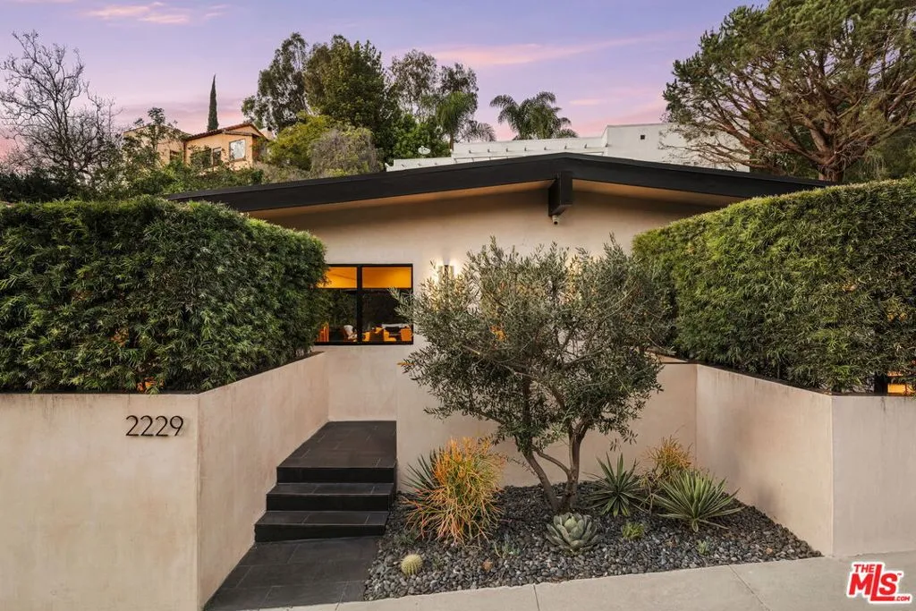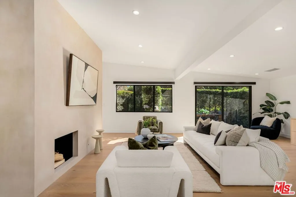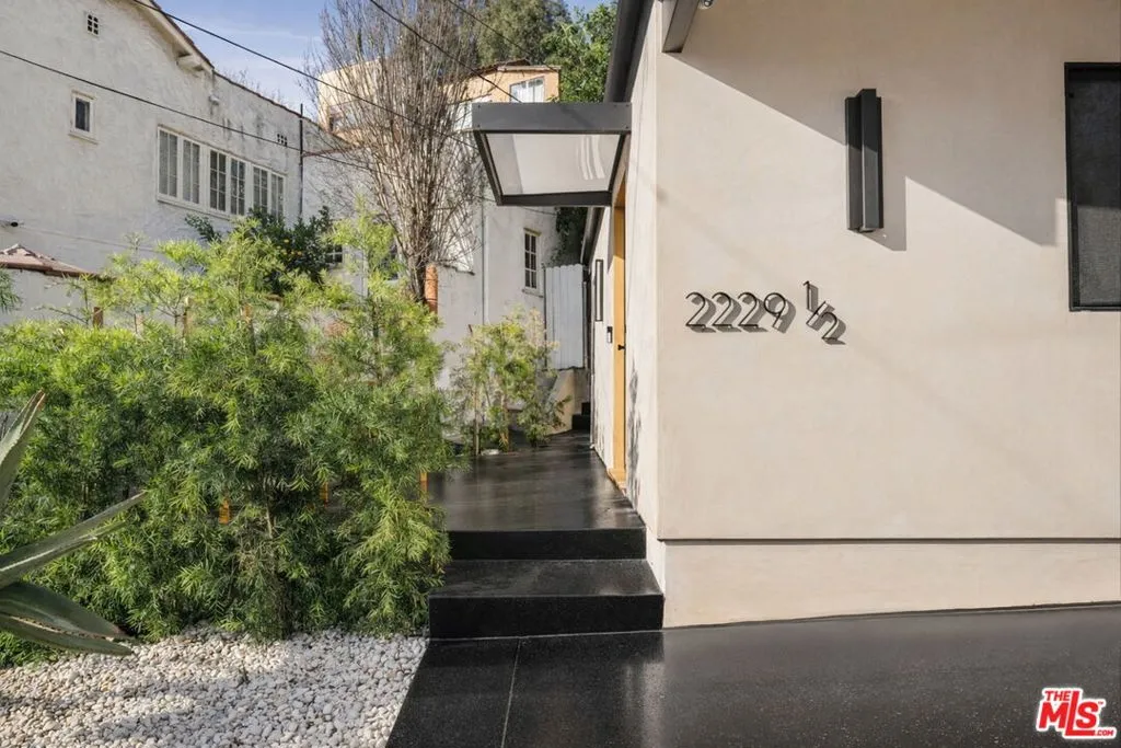 Introducing a rare ultra-luxury modern retreat in the Hollywood Hills, thoughtfully designed with no expense spared. This fully reimagined compound features a 2-bedroom, 2-bath main residence complemented by a separate, fully permitted 1-bedroom, 1-bath ADU offering exceptional privacy and versatility. Blending refined architecture, premium finishes, and seamless functionality, the property is designed for today's most discerning buyer. The main residence showcases meticulous craftsmanship throughout, highlighted by wide-plank Carrara hardwood flooring, hand-plastered detailing, and a dramatic plaster fireplace that anchors the living space. The designer kitchen serves as a true centerpiece, featuring custom cabinetry, an oversized island, honed Taj Mahal stone surfaces, and a full suite of high-end Thermador appliances, perfectly suited for both everyday living and elevated entertaining. Expansive sliding glass doors open on both sides of the space, creating effortless indoor-outdoor flow and an ideal setting for al fresco dining under the stars. Down the hall, spa-inspired bathrooms impress with custom plaster finishes, luxury stone countertops, and elevated hardware selections. Thoughtful details throughout the home include custom closets, surround sound, recessed lighting, and integrated climate features that enhance comfort and sophistication. The spacious primary suite offers a private outdoor retreat and a luxurious ensuite bathroom complete with a double vanity, a large walk-in shower with dual Axor shower heads, and a generously sized walk-in closet with custom lighting. The permitted 1-bedroom, 1-bath ADU features its own address and separate entrance delivers exceptional flexibility with a high-end kitchen, premium appliances, modern finishes that match the main residence, and a custom walk-in closet, making it ideal for rental income, guests, or a private office. Multiple outdoor spaces are designed for low-maintenance living and entertaining, featuring mature drought-tolerant landscaping, desert-inspired design elements, a sleek fire fit w a dedicated pre-plumbed gas line, an epoxy-finished concrete yard, and a large grassy area perfect for relaxation. Driveway with parking for three cars! Enhanced with modern security and smart entry features, this turnkey property offers luxury without compromise. A truly one-of-a-kind opportunity to own a private modern compound in the Hollywood Hills, offering exceptional quality, flexibility, income potential, and elevated Los Angeles living. This rare offering is not to be missed!
