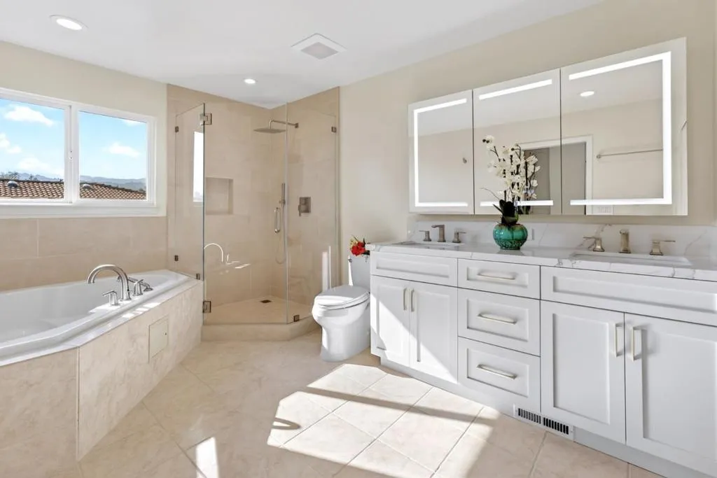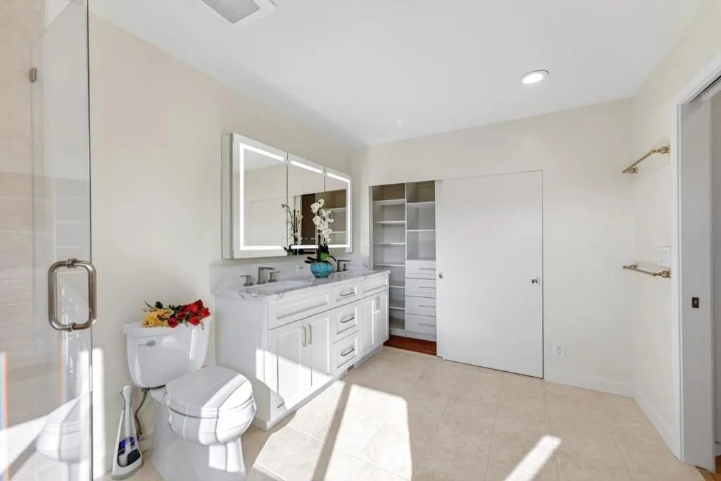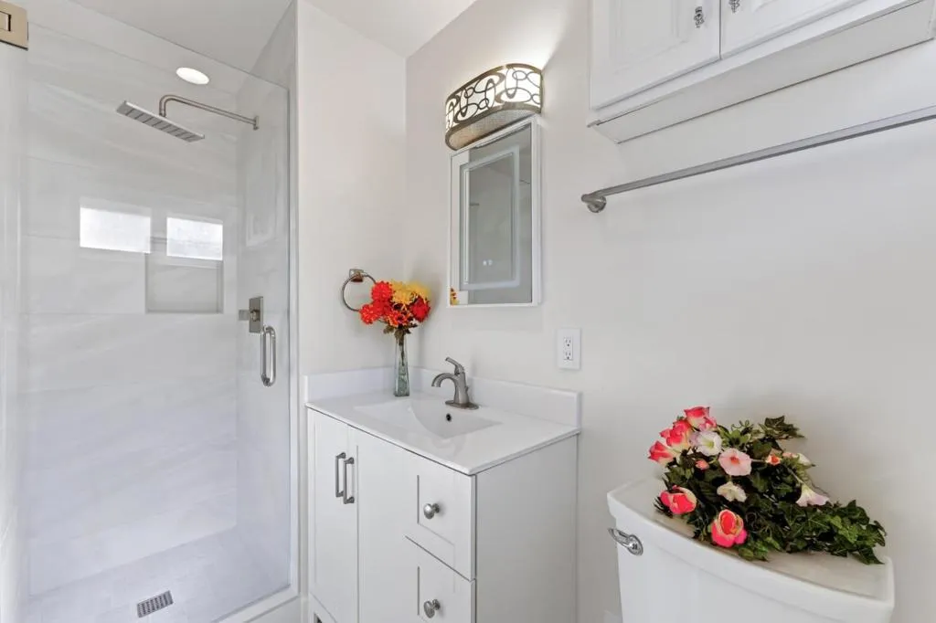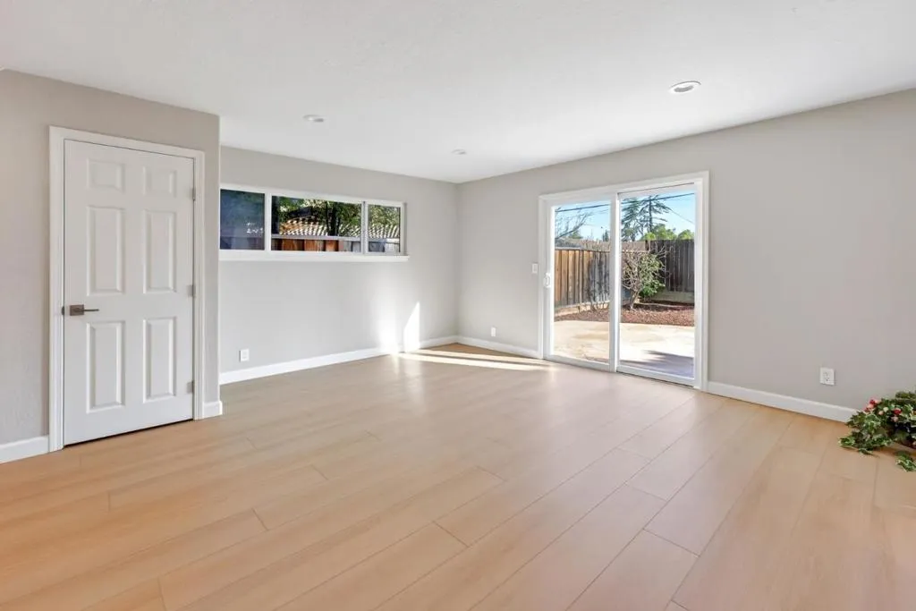 Welcome to a spacious and well-appointed, extensively remodeled, move-in ready home nestled in the heart of Cupertino. This residence offers 2,192 square feet of living space, featuring four bedrooms and three full bathrooms, providing ample room for comfortable living. The home features expansive living areas with gorgeous flooring and recessed lighting throughout. The gourmet kitchen is a chefs dream, showcasing crisp white cabinetry, marble-style countertops and backsplash, a central island, and a sleek modern refrigerator. The spacious living room is anchored by a cozy fireplace with a classic white mantel and is complemented by a separate family area highlighted by a stunning stained-glass chandelier. Retreat to the primary suite, which includes a luxurious modern bathroom featuring a double vanity with integrated LED mirrors and a glass-enclosed walk-in shower with premium tile work. Additional bedrooms offer generous closet space and large windows that invite abundant natural light. Outside, the private backyard is an entertainers delight, featuring a large flagstone patio surrounded by mature fruit trees and professionally designed landscaping. This meticulously updated home truly represents the best of Cupertino living.