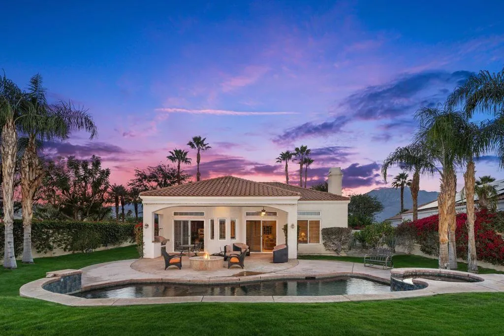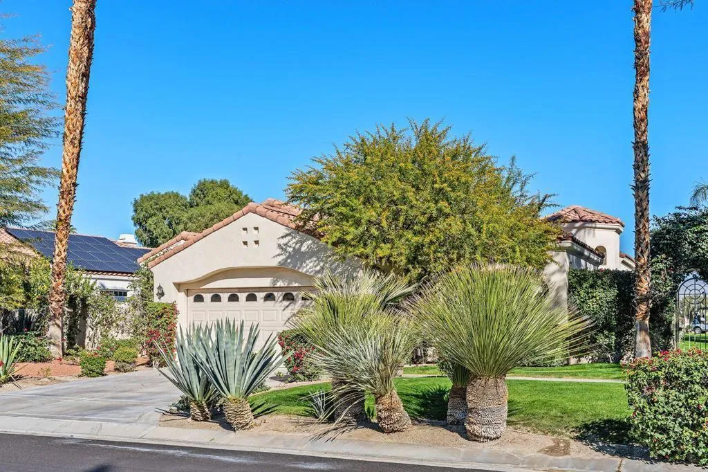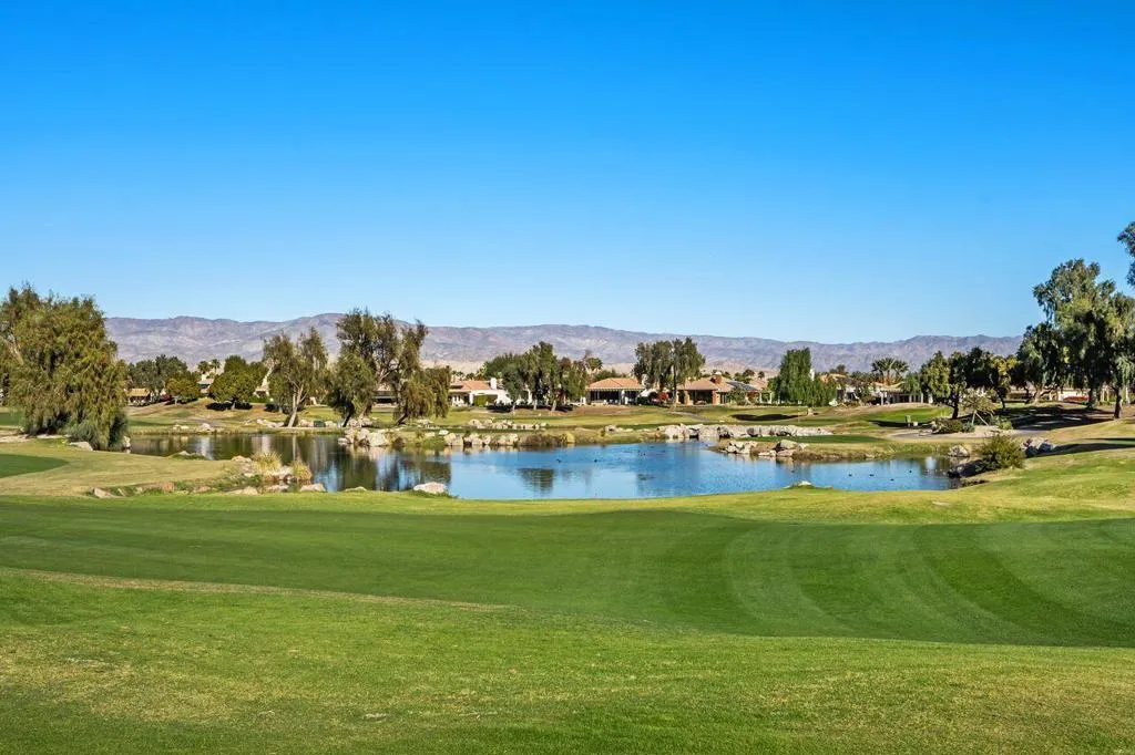 Beautiful views define this 2-bedroom plus den (optional 3rd bedroom), 2.5-bath residence overlooking the golf course, mountains, and tranquil pond in the prestigious gated community of Mira Vista. Perfectly positioned on the fairway, this home captures breathtaking desert scenery while offering an elegant blend of comfort and resort-style living. Ideal as a full-time residence or seasonal retreat, the thoughtfully designed layout invites relaxation, entertaining, and effortless desert living. A rare opportunity to enjoy one of Mira Vista's most picturesque settings--schedule your private showing today.