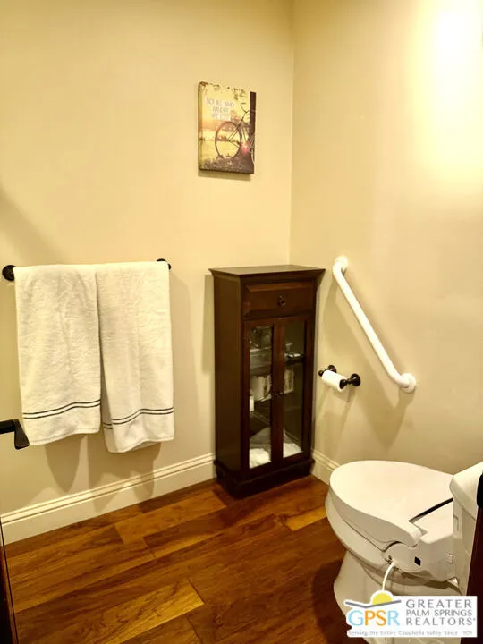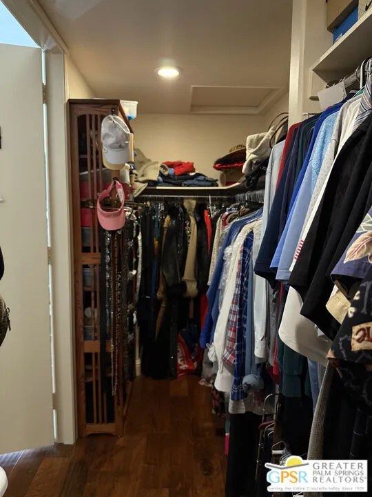 Welcome to Andreas Hills, an enclave of million dollar homes with million dollar views and underground utilities. This quiet area of South Palm Springs, close to the Indian Canyons is known for its hiking trails and scenic vistas. This 2 bedroom 2 bath condo is 1,882 Square feet. it has a double car garage with direct entry into a very private front courtyard entry... all on one level with green belt surrounding the unit. This condo has been upgraded with real walnut wood flooring throughout. The gated entry and front patio area with incredible mountain views gives you lots of privacy and feels more like a single family home. The pool and spa are a stones throw from the back patio. This contemporary one level handsome condo is a perfect desert getaway or full time sanctuary. Show it...it sells itself!