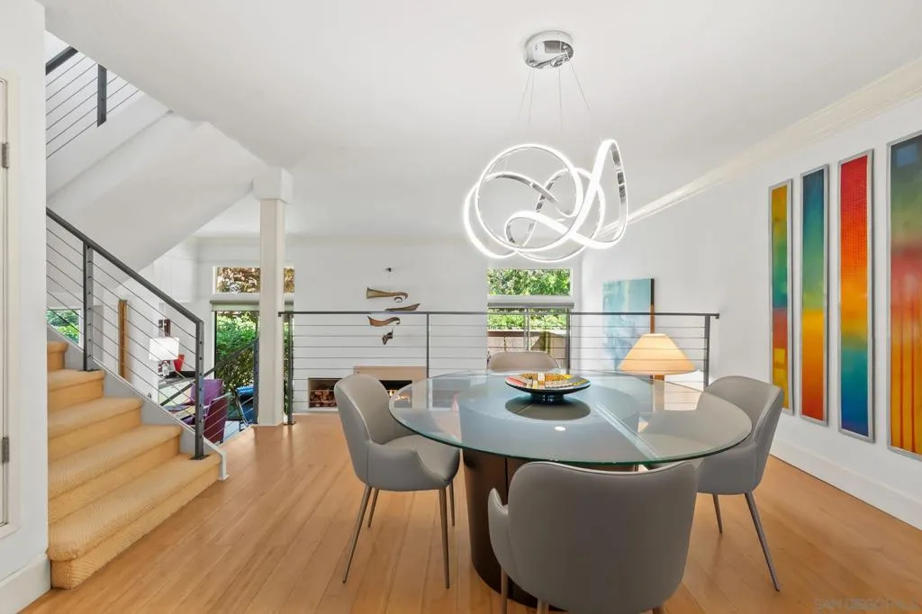 Absolutely gorgeous, light-filled, and perfectly positioned in one of the best locations in the complex, this La Jolla Shores townhome is quietly tucked away offering privacy, peace, and a serene setting. Extensively remodeled with over $250,000 in high-quality upgrades, the residence is ideally positioned in the coveted northwestern corner of the community, blending natural light, coastal charm, and an elevated sense of living. The home features 3 bedrooms and 3 en-suite bathrooms, including a highly sought-after main-level bedroom perfect for guests or a private home office. The dramatic living room impresses with soaring ceilings, abundant natural light, a fireplace, and bamboo flooring throughout the main living areas, while central air conditioning ensures year-round comfort. The beautifully remodeled kitchen combines style and functionality, showcasing stainless steel appliances, granite countertops, custom cabinetry, and oversized pantry drawers. Just off the living room, an enclosed patio creates a seamless indoor-outdoor flow ideal for entertaining. The spacious primary suite is a true retreat, featuring a wrap-around balcony, fireplace, walk-in closets, and a spa-inspired bath complete with a soaking tub, dual vanities, and a separate shower. An upstairs guest suite offers its own private bath and balcony access. Additional highlights include a 2-car attached garage with built-in cabinetry. Residents enjoy resort-style amenities including lush grounds, a private tennis court, and a sparkling pool—all just moments from La Jolla Shores beach, dining, and