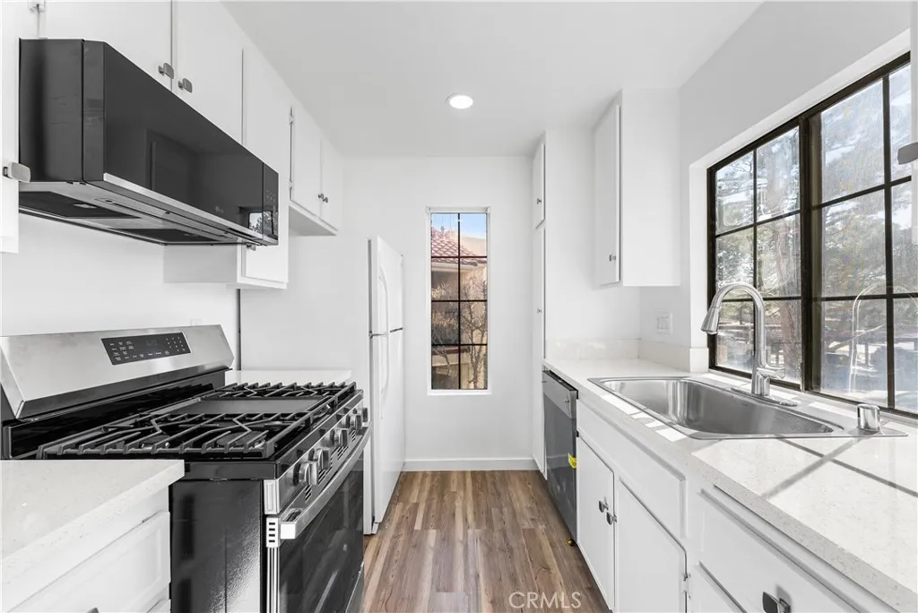 PRICE IMPROVEMENT !!! This turn key condo won't last much longer! Welcome to this newly renovated 1 bed, 1 bath condo in the well known gated community of Monte Vista in Palmdale. This is the perfect starter home for a single person or a young couple or anyone looking to downsize. It offers comfort and a lot of amenities for your buck with new flooring throughout. New granite counter tops, new recess lighting, new window treatments, stainless steel stove, dishwasher and microwave, new light fixtures, new bathroom vanity, new faucets, freshly painted. It also has central AC and Heating with a new smart thermostat and it has its own laundry area with a washer and dryer already in place as well as a private balcony. This community offers 24 hour security, an inviting swimming pool for the hot summer days , spa and additional laundry areas. Its very close to shopping, local transportation and just a few min from the 14 Fwy. Everything you need within a few min. Come take a look and fall in love, do not miss the opportunity to own this little gem in the heart of Palmdale.