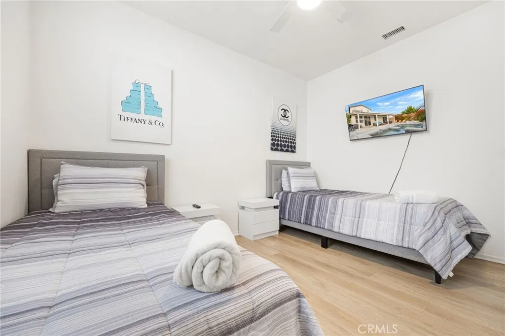 Welcome to The Breeze, an active and successful short-term rental offered fully furnished and located in the gated Terra Lago community of Indio. The property offers gross revenue potential of $100,000+ annually, with estimated cap rates up to 8.6% self-managed or approximately 6.7% with professional management, making it a standout opportunity for investors while remaining well suited as a primary residence or second home. This stylish 4-bedroom, 3-bath home features three bedrooms and two bathrooms on the main level for convenient single-story living, plus a private upstairs bedroom with its own bathroom—ideal for guests, multigenerational living, or an owner’s retreat. Designed for comfort and connection, the open-concept floor plan includes spacious living areas, a modern fully equipped kitchen, central A/C, and smart TVs throughout. The private resort-style backyard is perfect for relaxing or entertaining and features a heated pool, spa, outdoor fire pit, and dining area with scenic mountain views. Located near golf, shopping, dining, casinos, hiking, and major music festivals, this property checks every box for a turnkey income property, vacation home, or full-time residence in one of the Coachella Valley’s most desirable STR zones.