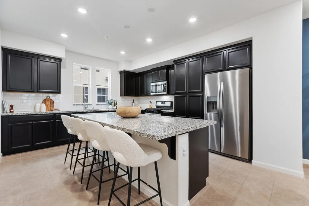 Modern townhouse in the desirable Bishops Ridge community. Built in 2019, this 4-bedroom, 3.5-bath home offers approx. 1,773 sq ft of well-designed living space. The first-floor bedroom with en-suite bath is ideal for guests, an office, or multi-generational living. The gourmet kitchen features quartz countertops, a center island, stainless steel appliances, and a gas range, opening to a bright living and dining area with high ceilings, abundant natural light, and a private balcony. Upstairs includes a spacious primary suite with a walk-in closet, dual vanity, and walk-in shower, plus two additional bedrooms and a full bath. Laundry is conveniently located on the main living level. Smart home features include pre-wired EV charging, a tankless water heater, and central heat/AC. Two-car garage and guest parking. Close to Lake Chabot, trails, I-580, BART, shopping, dining, and Yu Ming Charter School just one block away.