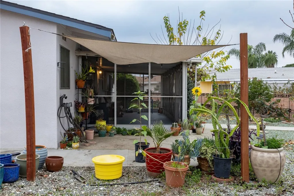 Welcome home to this move-in ready, well-maintained, upgraded 55+ community single level home featuring 2 bedrooms and 2 bathroom in over 1000 square feet of living space. You will find a large front living area with adjacent dining area connected to the upgraded kitchen space. There is also an attached fully enclosed sun room with plenty of space for lounging, entertaining, gardening or whatever you desire. Out back you will find a large wrap around backyard space with plenty of room to make it your own. There are several mature fruit trees on the property including apples, oranges and pomelo. Best of all the community pool is a hop and a skip away from your backyard and almost in your backyard. The property also has an upgraded electrical panel, upgraded HVAC and the roof has been replaced within the last 5 years. Located near grocery stores, eateries and amenities nearby. Schedule your visit today and don't miss out on this one!