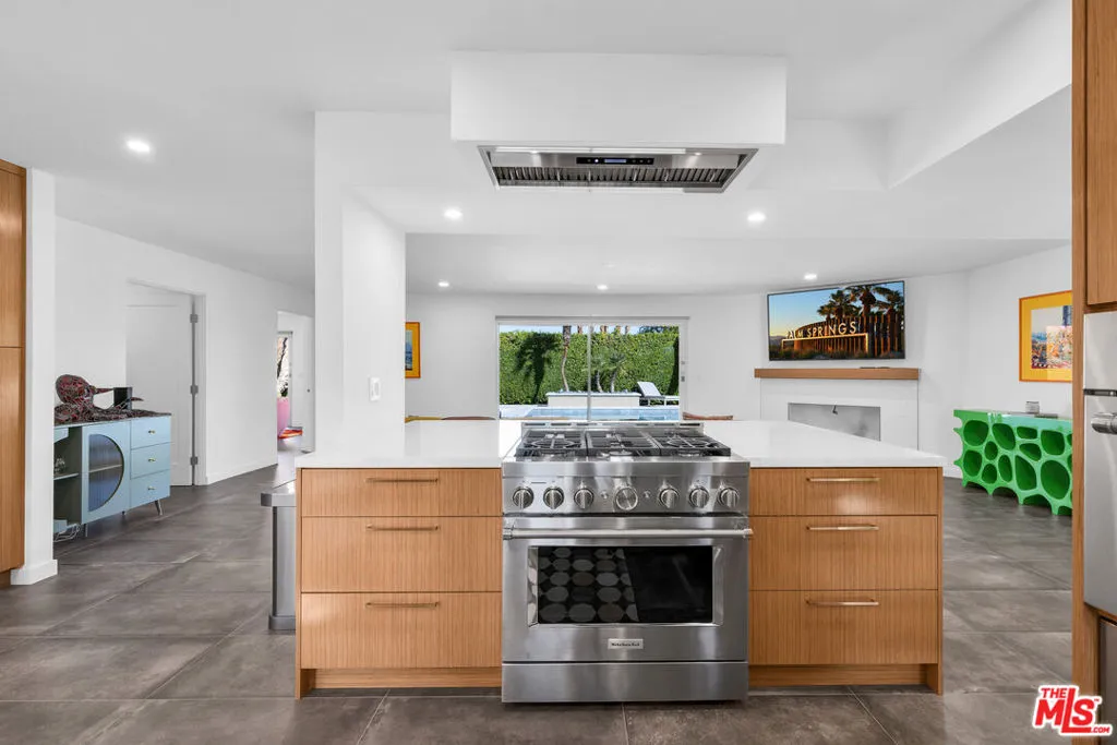 An authentic Mid-Century home invites you to embrace the lifestyle that only Palm Springs can offer. Set in the famous Indian Canyons neighborhood, this remodeled 4-bedroom, 3-bathroom residence sits on an oversized lot where you own the land and pay no HOA fees. Framed by breathtaking, unobstructed views of the San Jacinto Mountains, the backdrop feels straight out of a postcard. Designed for effortless desert living, the home blends iconic Mid-Century architecture with tasteful modern updates. The open-concept living and kitchen area is ideal for entertaining, where seamless indoor-outdoor living takes center stage. The newly remodeled chef's kitchen, featuring custom teak cabinetry, quartz countertops, stainless steel appliances, and a central island are perfect for morning coffee or sunset cocktails. Sleek flooring flows throughout, creating a cohesive and sophisticated aesthetic. Now with two primary suites that offers bright, inviting retreats, each with walk-in closets and direct access to the private yard. The vibrant renovated custom bathrooms make a statement with accent tiles, quartz vanities and backlit mirrors. Energy-efficient upgrades include paid solar panels, Fleetwood sliders, dual-pane windows, custom shades throughout, a Trane A/C , tankless water heater, and a new separate A/C system in the primary bedroom keeping comfort high and utility costs low. Step outside and let the sunshine bathe you in warmth as the sparkling pool and spa beckon. The private, serene yard is a true oasis, complete with fruit trees, multiple lounging areas, and the perfect setting for evening stargazing. Located in desirable South Palm Springs, away from the windy zone and in an active area, close distance to shops, dining, and hiking trails. This is the home you have been dreaming of.