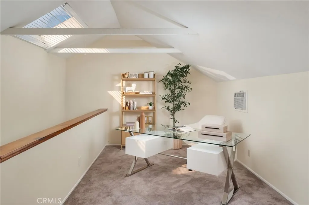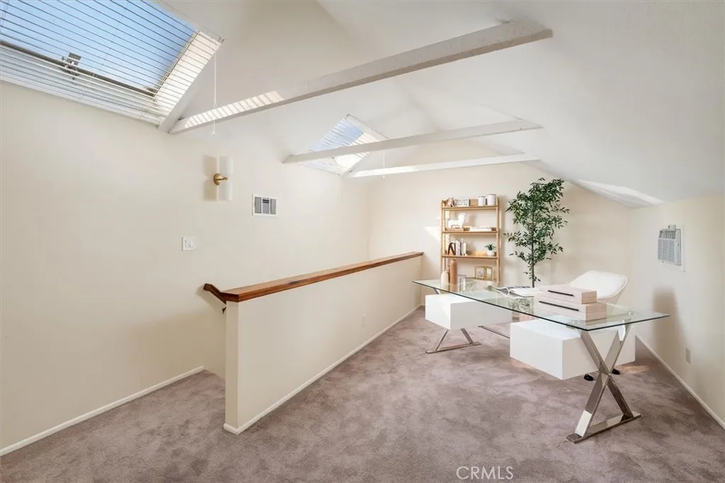 Single story style living with architectural character, a charming front porch, large upstairs loft, pool size backyard, attached two car garage, low HOA, and no Mello Roos in Valencia. This 2 bedroom plus loft, 2 full bathroom home is located in Santa Clarita’s Behind Granary Square neighborhood and offers both bedrooms and both bathrooms on the main level, creating true one level functionality with flexible bonus space upstairs. The living and dining rooms feature high ceilings with exposed beams and abundant natural light, along with a large sliding glass door that opens to a spacious backyard with patio and room for a pool or outdoor entertaining. The primary bedroom includes an attached bathroom and a sliding glass door with direct access to the backyard. A second bedroom and full bathroom are also located downstairs. An inviting front porch adds curb appeal and everyday livability, while the attached two car garage provides convenience. The community offers pools, parks, playground, and access to Valencia’s iconic Paseo system with miles of paved, landscaped, and lighted pathways connecting parks, schools, and neighborhood amenities, along with nearby access to Santa Clarita’s bike path network. Freeway close while still feeling tucked away. Zoned for Valencia Valley Elementary School, Placerita Junior High School, and Hart High School.