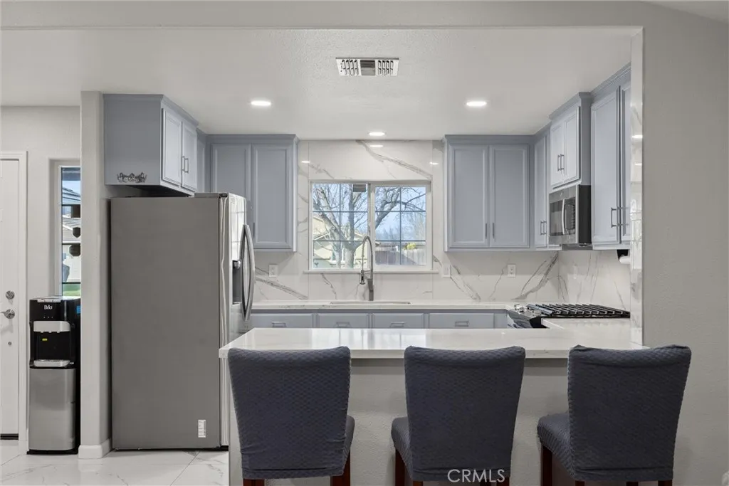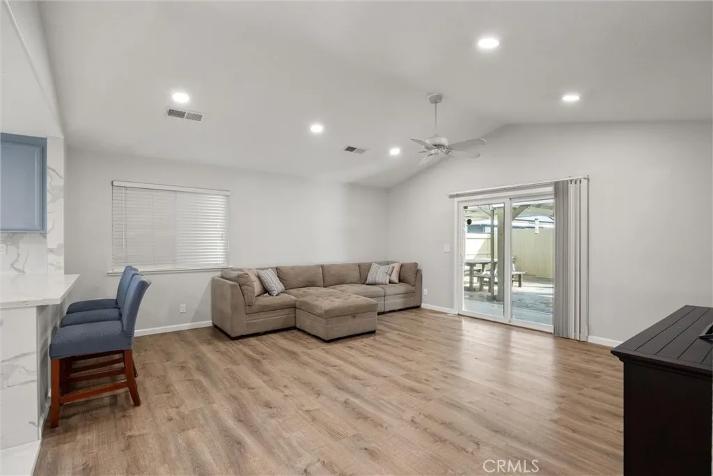 Very motivated Seller-Freshly updated and move-in ready, this beautiful five-bedroom, two-bath home is designed for comfortable living and effortless entertaining. The heart of the home features an updated kitchen showcasing stunning custom quartz countertops, stylish tile finishes, and an open-concept layout that flows seamlessly into a spacious living room with soaring vaulted ceilings. Large sliding glass doors flood the space with natural light and create a perfect indoor-outdoor connection to the backyard—ideal for gatherings and everyday living. Step outside to a thoughtfully designed, low-maintenance backyard with expansive concrete areas and two large pergolas, providing generous shade for relaxing afternoons and outdoor entertaining and a large shed for extra storage. The primary suite offers a private retreat, complete with an attached ensuite bathroom featuring a soaking tub—perfect for unwinding at the end of the day. Additional highlights include a cement tile roof for long-term durability, central heating and air for year-round comfort, and a 24-hour surveillance system offering added peace of mind. With low-maintenance features throughout and tasteful updates already completed, this home is truly turnkey an ready for its next owner to enjoy. A wonderful opportunity to own a spacious, updated home that blends style, comfort, and ease of living. Buyer to verify all information to their satisfaction.