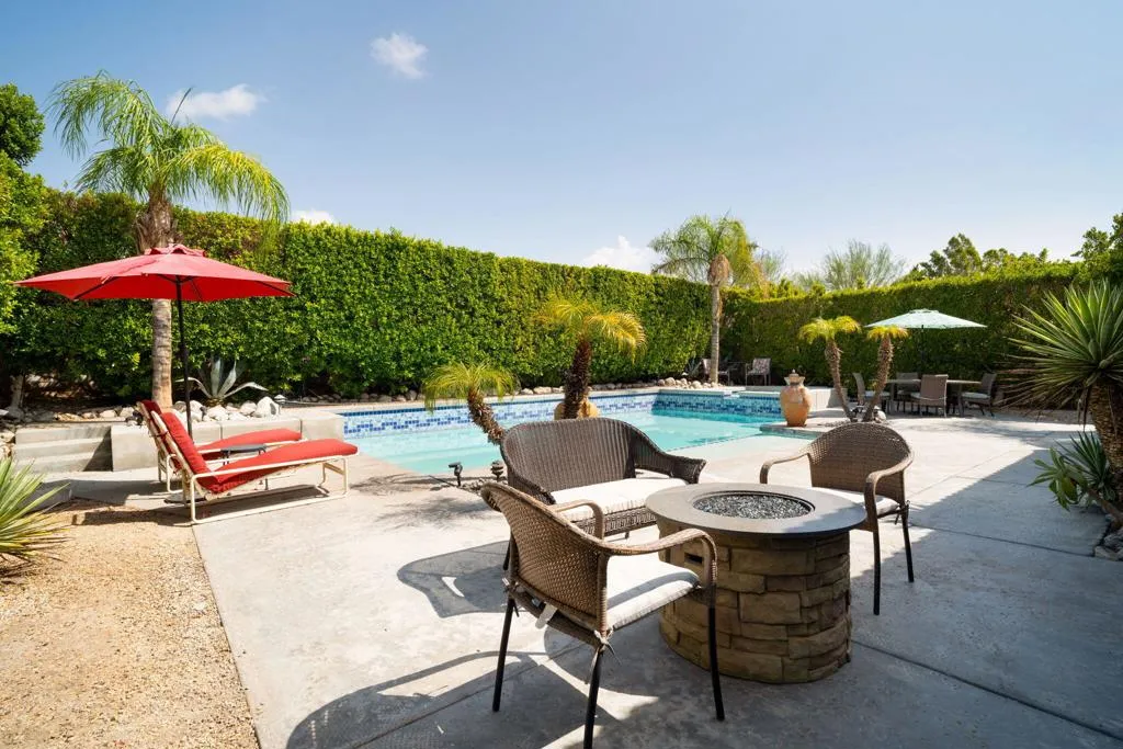 No HOA, No Land Lease! Will this beautiful home be your next desert escape? Property is ideally located in the heart of Palm Springs; near the convenience of shopping, parks, schools and a vibrant Downtown. 3 bedrooms, 2 full baths and a quiet, private backyard surrounded by privacy hedges with a backdrop view of the majestic San Jacinto mountains. If you are searching for the crown jewel of backyard pools, look no further! This pool is encompassed by dazzling blue mosaic tiles; features two waterfalls; a partially submerged tanning deck and an elevated spa with an unobstructed view of the mountains. What will you do in this Palm Springs Home? Will you relax the day away under the California sun, lying in the partially submerged tanning deck. Toast with friends in the elevated spa as you watch a dazzling desert sunset? Or, spend your evenings out on the town, entertaining guests? However you decide to spend your time, this house invites you to make memories that will last a lifetime.
