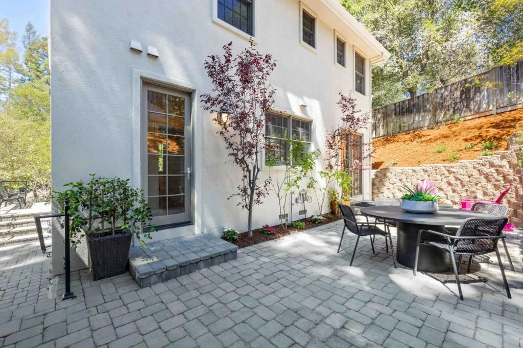 Set near the end of a secluded, tree-lined cul-de-sac, this welcoming home is surrounded by lush landscaping, with a graceful stone staircase leading to the front door. Sunlight fills the two-level layout, where hardwood floors, arched entryways, and crown molding add timeless appeal. The living rooms fireplace offers a comfortable gathering spot, while the dining room opens to the back patio for seamless indoor/outdoor meals, and the chef-quality kitchen features premium appliances from brands like Thermador and GE Monogram. Upstairs are three spacious bedrooms, including the primary suite with a jetted tub and shower. Outdoor enjoyment awaits on the large backyard patio and expansive front lawn, and the home also includes air conditioning, a 2-car garage, and extended driveway parking. Moments from the Rancho Shopping Center, Los Altos Golf and Country Club, nature preserves, and top-rated schools Loyola Elementary, Blach Intermediate, and Mountain View High (buyer to verify). Easy access to 280 and surprisingly little noise.