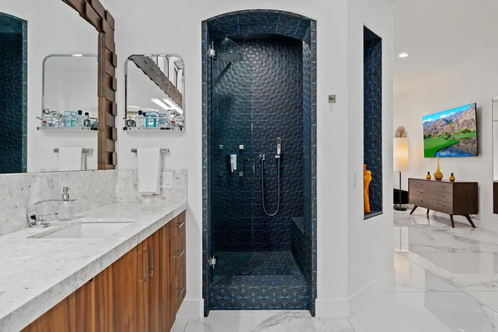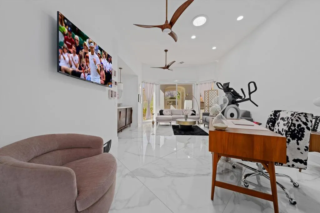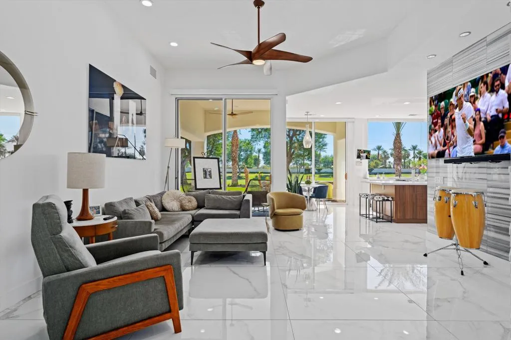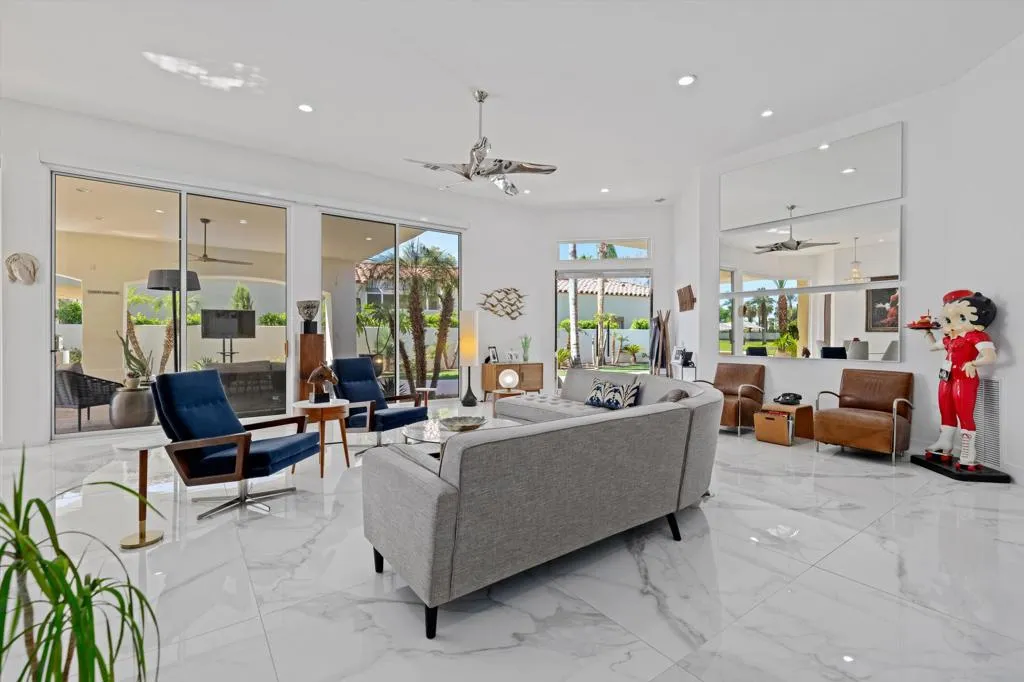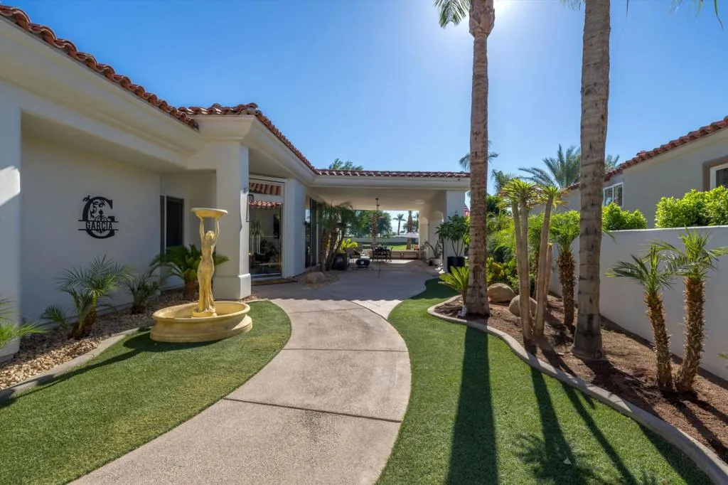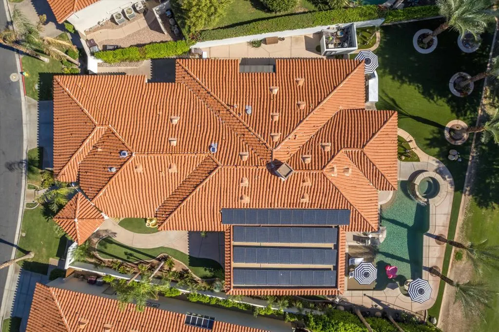 CITRUS CLUB: **OPEN THIS SAT 2/28 AND SUN 3/1, 11:00AM-1:00PM. COME SEE!!** Over $600K spent on renovation - includes OWNED SOLAR. No expense was spared in crafting the high-end finishes. From the gated courtyard with a massive covered outdoor patio and breathtaking views of the pool and golf course, this home exudes sophistication.The open floor plan boasts soaring 16' ceilings, 3 bedrooms, a large den (which doubles as a 4th bedroom), and 4 baths. The gourmet kitchen is a chef's dream, featuring Viking appliances, a 72'' refrigerator, quartz countertops, custom cabinetry, and oversized windows that seamlessly blend indoor and outdoor living. The living room is centered around a stunning marble fireplace, complete with a full wet bar.Step outside to a HUGE 800 sqf covered patio, which flows to the PebbleTec pool and spa. The pool includes a 300 sqf tanning shelf, and built-in cocktail table. The grill is Viking w/ marble countertop. There's also a pet area, synthetic grass, custom lighting and security cameras.The primary suite is a true retreat, showcasing a luxurious spa-like bath with a steam shower, jet tub under a gorgeous chandelier, dual sinks, and a spacious walk-in closet. Additional features include 48x48 tile floors, electric shades, USB chargers, and so much more!!
