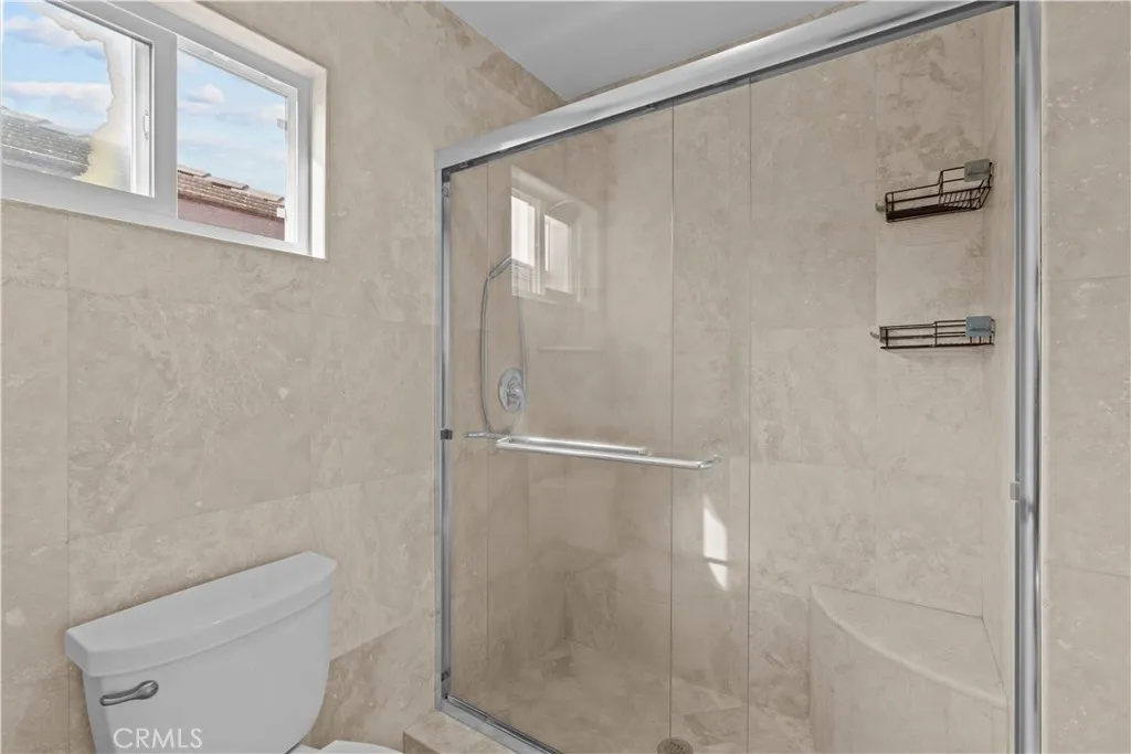 Vaulted ceilings and abundant natural light create an airy, open feeling from the moment you enter. French doors, skylights, and expansive windows bring the outdoors in, filling the home with soft coastal light throughout the day. Travertine floors anchor the main living spaces, while soaring ceilings add to the sense of scale and ease that defines the home.