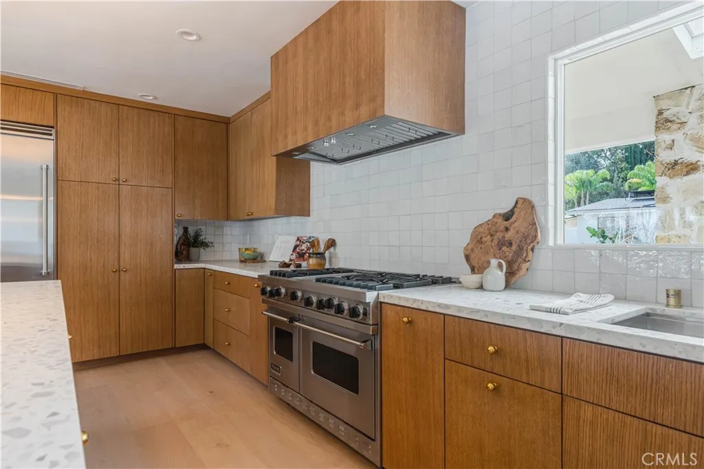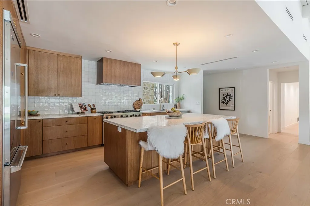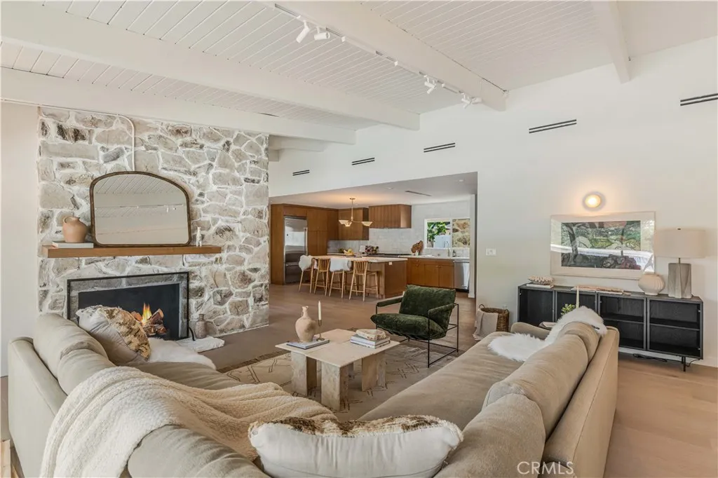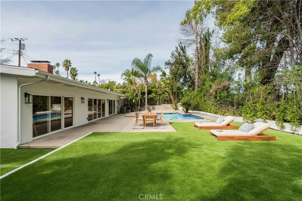 An iconic Charles Dubois mid-century residence, thoughtfully reimagined to blend timeless architectural integrity with modern volume, warmth, and livability. This thoroughly well thought out design, with all bedrooms ensuite plus an additional powder room, honors the original spirit of Dubois’ design while elevating it for contemporary living. The layout has been redesigned to create a seamless open-concept floor plan, connecting the kitchen, living room, and dining areas into one expansive, light-filled space ideal for both everyday living and entertaining. The walls of glass off the entertaining spaces look out onto the spacious outdoor areas, which include a beautiful swimming pool and sunning terraces set against the backdrop of the mature landscape. Clean lines, balanced proportions, and an effortless indoor-outdoor flow reflect the hallmark elements that made Charles Dubois one of the most celebrated mid-century architects in California. The kitchen serves as the heart of the home, featuring custom cabinetry, premium countertops, combine sculptural design with everyday function. Each bedroom is a private en-suite retreat, offering flexibility and comfort for family, guests, or work-from-home living, while the addition of a well-placed powder room adds convenience for entertaining. A rare opportunity to own a true Charles Dubois architectural home—updated for modern life while remaining deeply rooted in mid-century design—perfectly positioned in one of Woodland Hills’ most desirable neighborhoods.