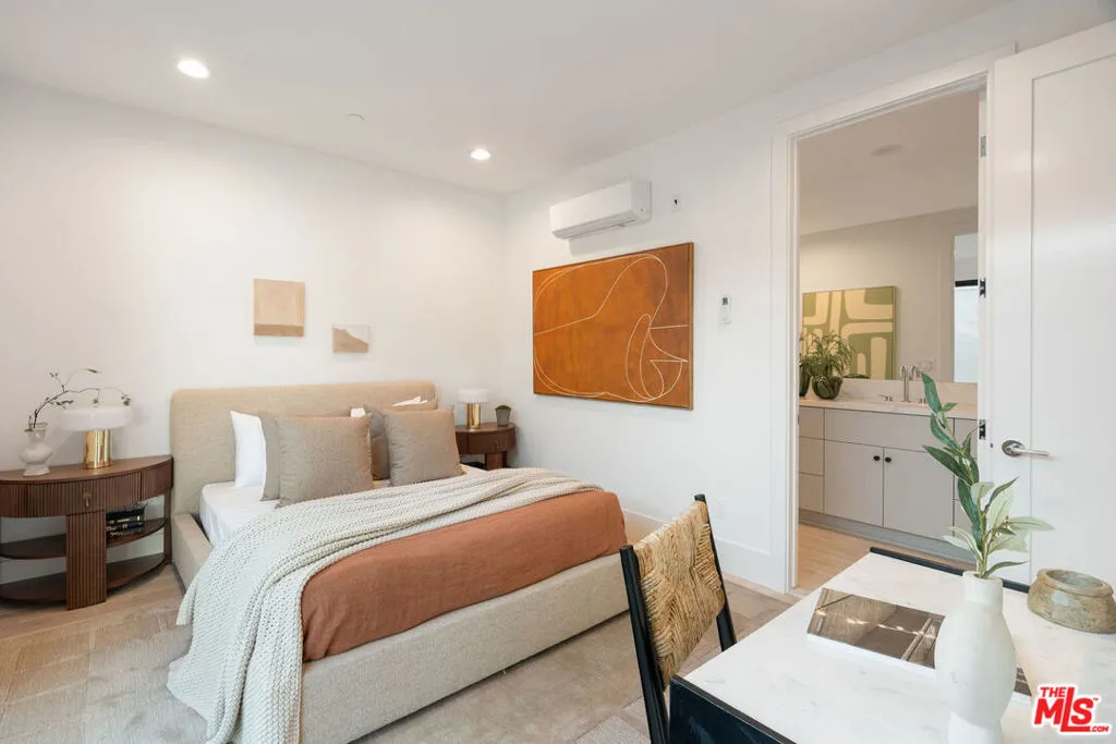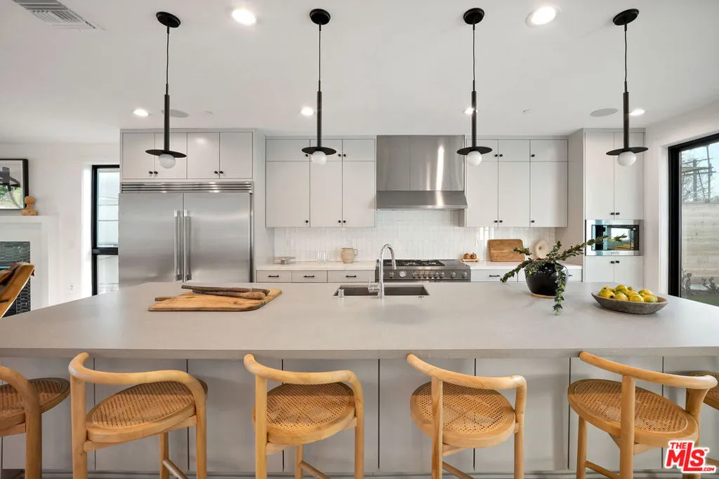 Welcome to refined elegance and timeless modern design in the heart of Silver Lake. This stunning architectural residence unfolds with intention and beauty, beginning with a spacious guest suite and beautifully appointed full bath, ideal for visitors or flexible living.A dramatic staircase leads to a sunlit living room with a modern fireplace, complemented by a dedicated dining area that flows effortlessly into the heart of the home. The gourmet kitchen is an entertainer's dream, featuring an oversized island, Bertazzoni range, abundant storage, and custom cabinetry. Soaring ceilings and a timeless architectural aesthetic create a sense of volume and light throughout. Expansive sliding glass doors open to a sun-kissed yard and alfresco dining terrace, offering seamless indoor-outdoor living. Every detail has been thoughtfully curated to balance culinary creativity with luxurious comfort.The main level also includes an office nook and an additional bedroom with a full bath, providing versatility for work or guests. Upstairs, the home reveals a serene primary suite, two additional bedrooms, a family lounge, and a generously sized laundry room complete with built-in cabinetry and sink. The showstopping primary retreat is a true sanctuary, featuring an expansive walk-in closet and a spa-like bath with a freestanding soaking tub, dual-sink vanity, and oversized walk-in shower. Just moments from Sunset Boulevard, you're perfectly positioned to enjoy the best of the neighborhood. Enjoy a morning coffee at the iconic LAMILL Coffee and effortless evenings at celebrated local favorites such as L&E Oyster Bar, Ceci's Gastronomia, and Botanica. New TJH homeowners will receive a complimentary 1-year membership to Inspirato, a leader in luxury travel.