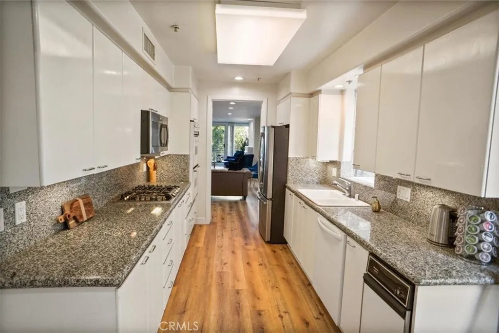 Welcome to this bright, front-facing corner condominium offering exceptional comfort and style, with only two units per floor and a thoughtfully designed open floor plan filled with recessed lighting and abundant natural light. The expansive living and dining areas are ideal for entertaining and flow seamlessly into the open kitchen, complete with a breakfast area and bar. Tasteful upgrades include motorized Hunter Douglas sheer window coverings, adding both sophistication and ease. The home features a convenient powder room, in-unit laundry with generous storage, and balconies on both ends of the unit. The primary suite is a true retreat, showcasing soaring ceilings, a cozy fireplace, two adjoining walk-in closets, and a spa-inspired bathroom with dual vanities, a separate tub and shower, and a relaxing jacuzzi. The secondary bedroom offers an ensuite full bath, ensuring comfort and privacy. Ideally situated within walking distance to Westfield Century City Mall and popular lifestyle shops, and just minutes from Beverly Hills, this residence delivers unparalleled convenience in one of the area’s most desirable neighborhoods.