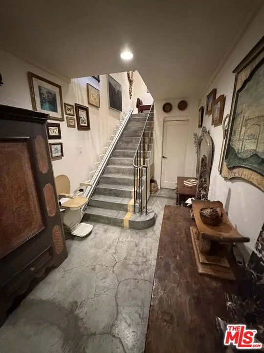 Fantastic live/work space in a historic Art Deco landmark industrial building built in 1939. Once a bank, for the past 25 years, used a showroom for a prominent antique furniture designer. The stunning bow-string truss ceiling dominates the top of the square footage, along with a loft for storage accessible via a sturdy staircase. Another beautiful stone staircase with a wrought iron banister leads up to a wonderfully appointed apartment on the second floor. The living space has three bedrooms, a full bath, a spacious eat-in kitchen with newer appliances and finishes, laundry, and a hidden closet. Parking for numerous vehicles. An unusual space, it is perfect for a discerning, creative buyer or tenant.