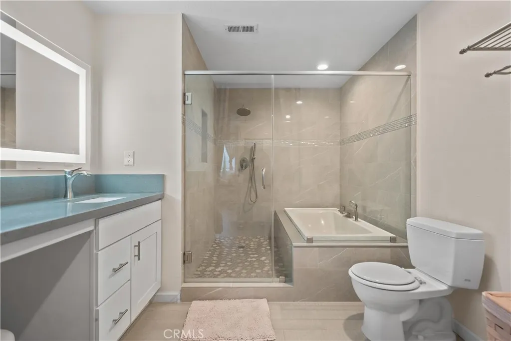 Modern Stylish Townhome in the city of West Covina. Gorgeous Panoramic City Night Views from Both Levels. It features 2 Bedrooms, 2.5 Bathrooms with 2-Car Garage. This thoughtfully upgraded two-story townhome combines modern design with elegant touches. The open-concept living area features high ceilings, a gold-plated crystal chandelier, wood flooring throughout, crown molding, and custom-designed curtains. The living space with fireplace flows seamlessly into a contemporary kitchen with custom cabinetry, granite countertops, full backsplash, and water filtration system. Quality upgrades include Type-L copper water pipes, ABS sewer piping, and hot wired ceiling lighting, recessed lights, trims, and outlet covers, modern wall mirrors with dimmer lighting and a wall-mounted fogless makeup vanity mirror, etc. Upstairs offers two master suites with remodeled luxury bathrooms featuring frameless glass showers, soaking tubs, and LED-lit mirrors. Additional highlights include a house water softener, low-maintenance landscaped backyard with artificial grass and Lily flowers, city views, front and back Ring doorbells, direct-access 2-car garage, and ample guest parking. HOA amenities include a large pool and spa, ideal for relaxation and entertaining. Comfortable, modern living with city views in a desirable West Covina location — must see before it’s gone.