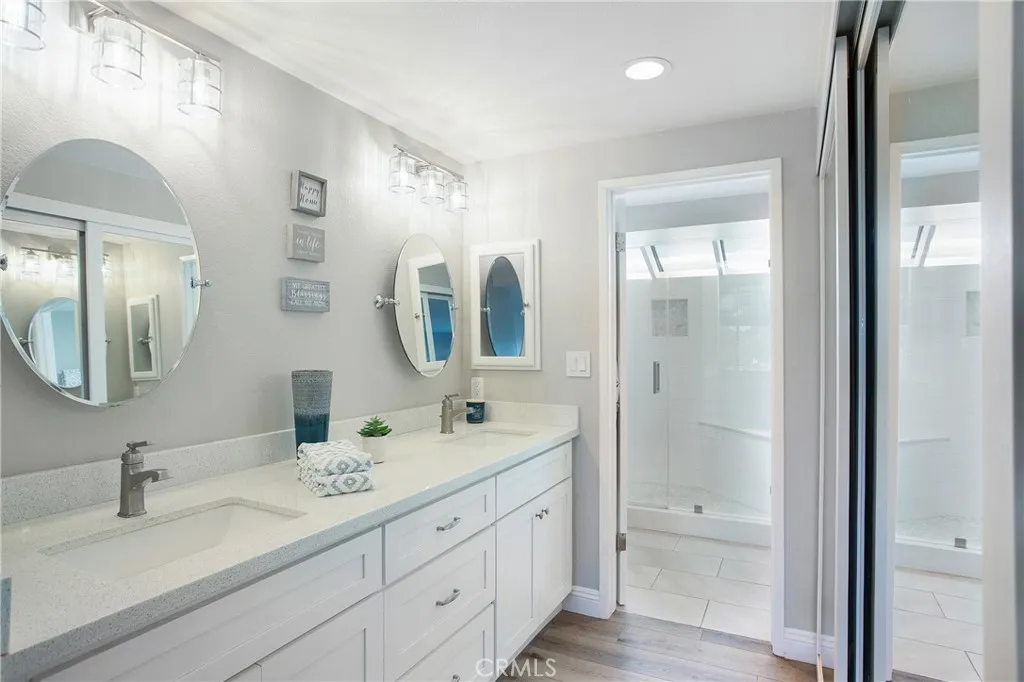From the moment you step inside you are greeted with panoramic lake and mountain views. Located in one of Mission Viejo’s most sought-after guard-gated lakefront communities, this stunning home is perched on a quiet cul-de-sac offering unobstructed views of Lake MV, Saddleback Mountains and breathtaking sunsets. Spacious open floorplan seamlessly connects the living areas with walls of glass opening to a private patio surrounded by greenbelts—creating an ideal backdrop for indoor-outdoor living and entertaining. The home has been remodeled with no expense spared, including new dual-pane windows and sliding doors that flood the interior with natural light. Living room features remodeled fireplace with custom mantel complemented by luxury vinyl flooring throughout the main living areas. The fully renovated kitchen features quartz countertops, designer backsplash, soft-close cabinetry, Gallery stainless steel appliances and charming nook perfect for casual dining, home office or flexible living space. Primary suite is a private sanctuary where you’ll wake up to peaceful lake views and offers expansive closet space with custom organizers, spa-inspired bath showcasing walk-in shower, soft-close dual vanities, quartz countertops, brushed hardware, designer mirrors and lighting. Secondary bath is equally impressive with walk-in shower accented with pebble detail, new vanity and abundant natural light. Even the linen area has been thoughtfully redesigned with floor-to-ceiling custom cabinetry. Enjoy the convenience of a 2-car garage with new smart opener just steps from your private entry. Additional upgrades include new panel doors and hardware, cabinet pull outs, upgraded baseboards, updated electrical, recessed LED lighting, new light fixtures, ceiling fans, washer, dryer and refrigerator included. Bonus opportunity: Electra Craft “Duffy style” boat may be offered for sale after close of escrow. Residents enjoy lake living in a 24/7 guard-gated setting, private beaches, 2 pools, spas, scenic walking trails and Lake MV amenities including boat rentals, sailing club, paddleboarding, kayak slips and storage, playground, summer concert series, fireworks and year-round events. Walk to nearby gym, restaurants and everyday conveniences. Private boat docks are available to residents at low monthly rates. This is more than a home—it’s a lifestyle with effortless access to the water and tranquility defined by lake, mountain, sunset, city light views and effortless luxury