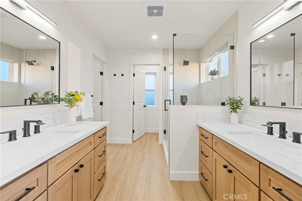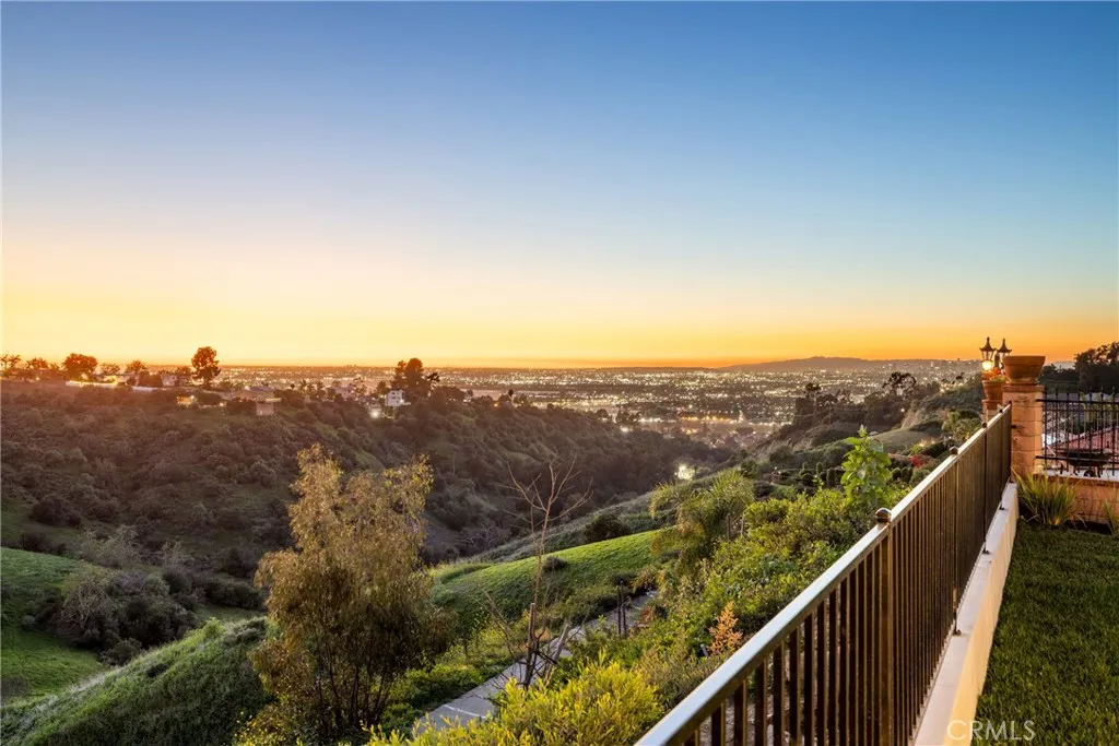 Welcome to 4807 Cinco View Dr, Whittier, a stunning new construction two-story home offering 5 bedrooms and 4 bathrooms, perfectly situated on a quiet cul-de-sac in Whittier Hills. This elevated property delivers privacy, modern design, and panoramic mountain, canyon, and city views. The bright entry opens to a formal living room with a dramatic statement fireplace and abundant natural light. The chef’s kitchen features custom cabinetry, quartz countertops, stainless steel appliances, and a large waterfall island, flowing seamlessly into the dining and family rooms—ideal for everyday living and entertaining. The formal dining room is framed by oversized windows capturing scenic views, while the family room opens to the outdoors and includes a stylish wet bar with custom cabinetry and prep sink. A downstairs bedroom and bathroom with a modern vanity and glass-enclosed walk-in shower adds convenience for guests or multigenerational living. Upstairs, the primary suite offers a spacious retreat with hillside views, a spa-inspired ensuite bathroom with dual vanities, walk-in shower, and a walk-in closet located within the bathroom. A second primary bedroom with its own ensuite provides flexibility for guests or extended family. Additional bedrooms are generously sized. A large upstairs laundry room features quartz counters, custom cabinetry, and a utility sink. The backyard backs to open hillside, offering exceptional privacy, peaceful surroundings, and breathtaking sunsets and city lights. Additional highlights include a convenient custom mudroom, paid-off solar, energy-efficient construction, a three-car garage. Close proximity to parks, hiking trails, shopping, dining, and freeway access. A rare opportunity to own a new construction home with views in one of Whittier’s most desirable hillside neighborhoods, the Spy Glass Estates. Schedule your private showing today!