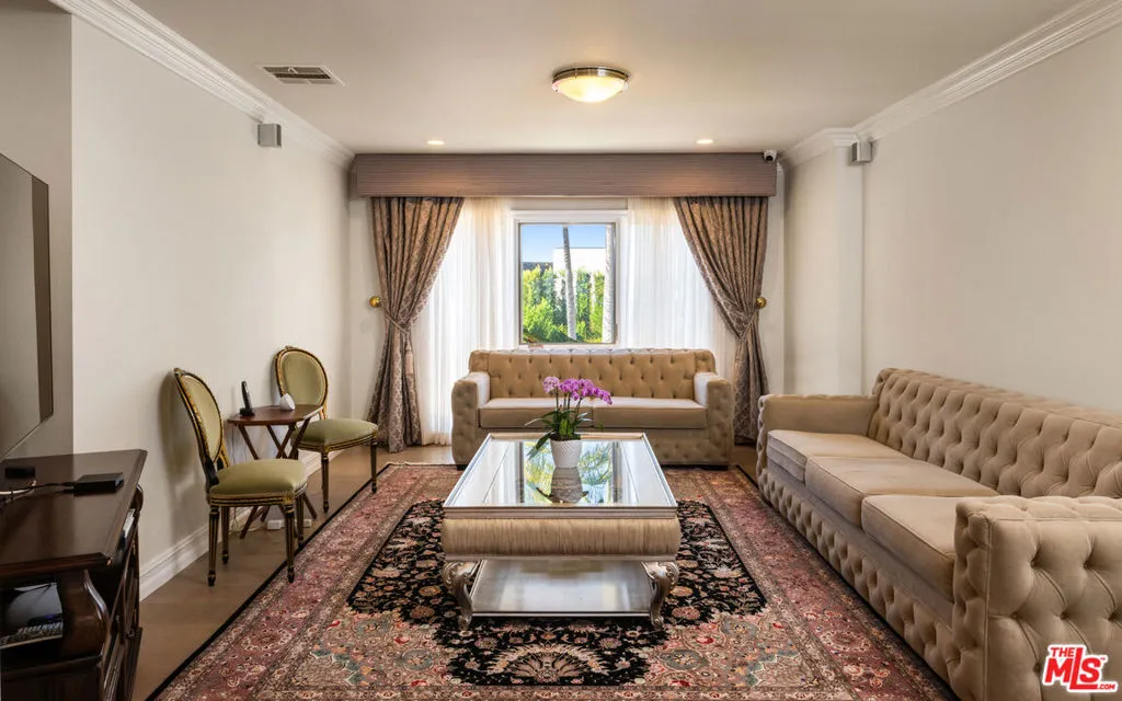 Situated on an expansive promontory of 20,000 square feet at the end of a quiet Trousdale Estates cul-de-sac, this distinguished mid-century residence offers sweeping landmark, mountain, and city views while embodying the essence of the Beverly Hills lifestyle. Designed with the elegance and confidence of 1960s elite architecture, the home has been thoughtfully enhanced to meet the expectations of modern luxury living. Upon arrival, the residence reveals graciously proportioned living and dining areas framed by refined architectural details and an abundance of natural light. The interiors unfold with a sense of openness and ease, creating a harmonious balance between formal sophistication and everyday comfort. Expansive sightlines and a seamless layout make the home equally suited for intimate daily living and elegant entertaining. The kitchen, designed with functionality and flow in mind, offers generous scale and connects effortlessly to the surrounding living spaces, reinforcing the home's emphasis on connectivity and livability. Outdoors, the private pool is set against a serene backdrop, providing a tranquil environment for relaxation, entertaining, or quiet moments of retreat. Set within one of Beverly Hills most coveted neighborhoods, this Trousdale Estates offering presents a rare opportunity to enjoy privacy, architectural pedigree, and iconic views, including the Hollywood Sign, Observatory, Downtown Los Angeles, mountains, and city skyline. an exceptional residence that captures timeless style, understated luxury, and the true spirit of Southern California living.