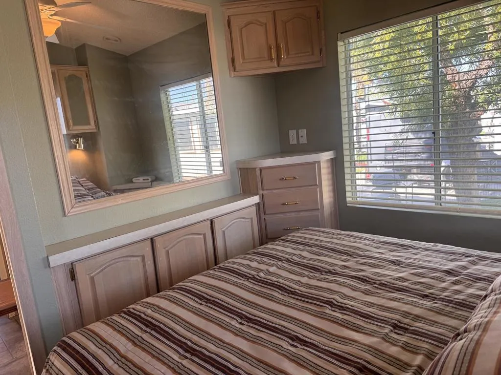 Located on one of the largest and most private lots in Rancho Casa Blanca, this beautifully maintained park model sits at the end of a quiet cul-de-sac, offering exceptional peace and privacy. The home features one of the largest decks in the entire community, perfect for outdoor entertaining, relaxing, or simply enjoying the serene surroundings.Designed for both comfort and functionality, the home includes a washer and dryer, a storage shed, and thoughtful use of space throughout. Whether you're hosting friends or enjoying a quiet retreat, this property truly has it all.Set within the highly desirable Rancho Casa Blanca community, residents enjoy an unmatched resort-style lifestyle with free year-round golf, a fully equipped fitness center, pickleball and tennis courts, and multiple pools and spas. Additional amenities include bocce ball, billiards, horseshoes, and two large clubhouses plus four satellite buildings offering over 60 clubs and classes. The community is guard-gated with regular security patrols, providing added peace of mind.Whether you're looking to stay active or unwind in a tranquil setting, this home offers the perfect blend of comfort, privacy, and vibrant community living -- and with a golf cart, getting around is a breeze.