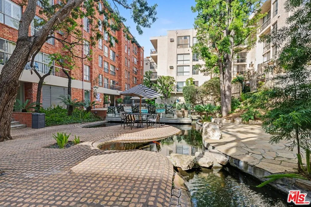 Desired Top floor 2 bed/1 bath corner-unit on quiet backside of The Colony at Westwood, with secured entry, updated pool/spa/gym/laundry, lounge and recreation room. 2 level unit with open floor plan that includes high ceilings, recessed lighting in living room, kitchen with quartz countertops, stainless steel appliance and breakfast bar. 1 bedroom on main level with 2 closets and updated full bath with floating sink and tile finishes. Spiral staircase leads to 2nd bedroom/open loft area with skylight and hardwood floors. Extra bonus space upstairs ideal for office/storage. Pets ok, secured 1 parking space in front garage, common area EV charging, common area laundry. Ideal close proximity and convenient location within a few blocks of UCLA campus and all the great retail, grocery and restaurants in Westwood Village and Westwood Blvd. including Whole Foods, Bristol Farms, Trader Joe's, 99 Ranch Market, Sprouts, and many coffee shops and restaurants. Also, close to Westwood Recreation Center, Tennis and Park, Westfield Century City and Beverly Hills. Move-in ready!