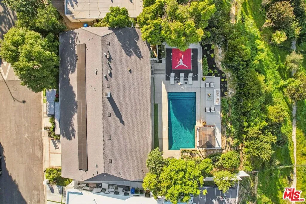 VIEWS, VIEWS, VIEWS define this stylish 1964 Mid-Century Modern Encino Hills home showcasing classic Spielman-Fond architecture and a coveted single story floor plan with 5 bedrooms, 5 bathrooms and evan a full size den. Enjoy peace of mind with a newer roof, new electrical panel, newer windows, electric car charger and ownership of a huge solar panel system. Enter through a lush private courtyard and double doors into a dramatic vaulted ceiling living room with a decorative fireplace and a wall of dual glazed sliding glass doors capturing sweeping valley and city views with abundant natural light. Designed for easy living and effortless entertaining, the home offers multiple gathering spaces, including the secluded den with its own wet bar. The light filled kitchen features updated finishes and a welcoming breakfast area, perfect for everyday mornings and casual meals.The bedroom layout offers comfort and flexibility, while the primary suite is privately positioned toward the rear with a remodeled bathroom and direct access outdoors for a true retreat feel. Step outside to enjoy the signature Encino Hills lifestyle with a sparkling pool, generous patio space for alfresco dining, and a wide, expansive backdrop. The backyard also includes an existing basketball sport court for recreation and exercise. Not only minutes to the 101 and 405 freeways, Mulholland Drive, and the Skirball Cultural Center, this home is also situated in the highly sought after Lanai Road Elementary School district, with convenient access to some of Los Angeles' other most prestigious schools. A dream of opportunity to own an architectural Encino Hills view home with a pool, serenity, timeless Mid-Century design surrounded by highly regarded educational facilities.