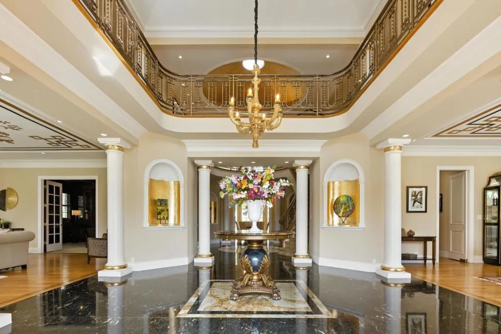 Price improvement from $48,000 to $35,000 . Elegant Mediterranean Classic two-story estate blending old-world charm with modern comfort. Located at the end of a quiet cul-de-sac for exceptional privacy, the home features Roman columns, ornate ceilings, and an open floor plan. Main level includes formal living and dining rooms with butlers kitchen, mahogany-paneled library, office suite, and kitchen-family room overlooking the lush backyard. Five generously sized bedroom suites upstairs, including an expansive primary suite with sitting area. Resort-style backyard with pool, spa, and home theater. Minutes to Sand Hill Road, Stanford, and major tech campuses. Top Los Lomitas schools. Just drop the price to $40,000 per month.