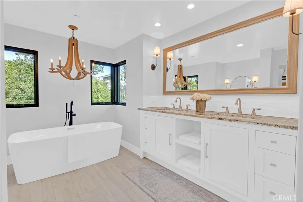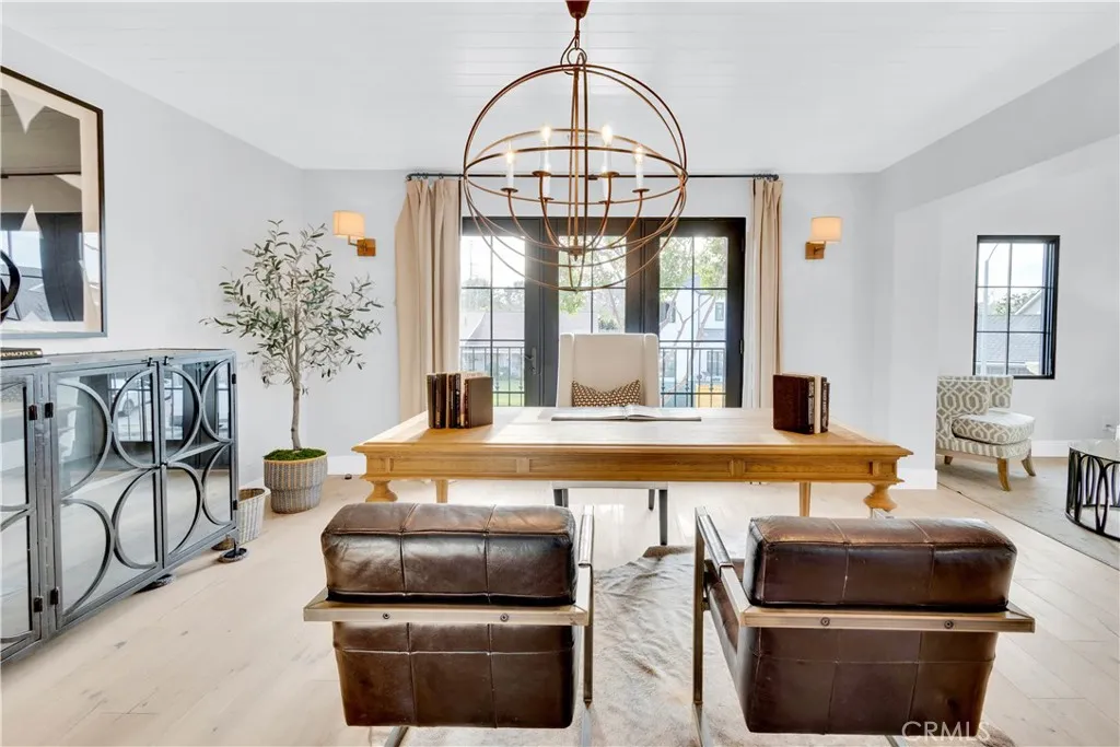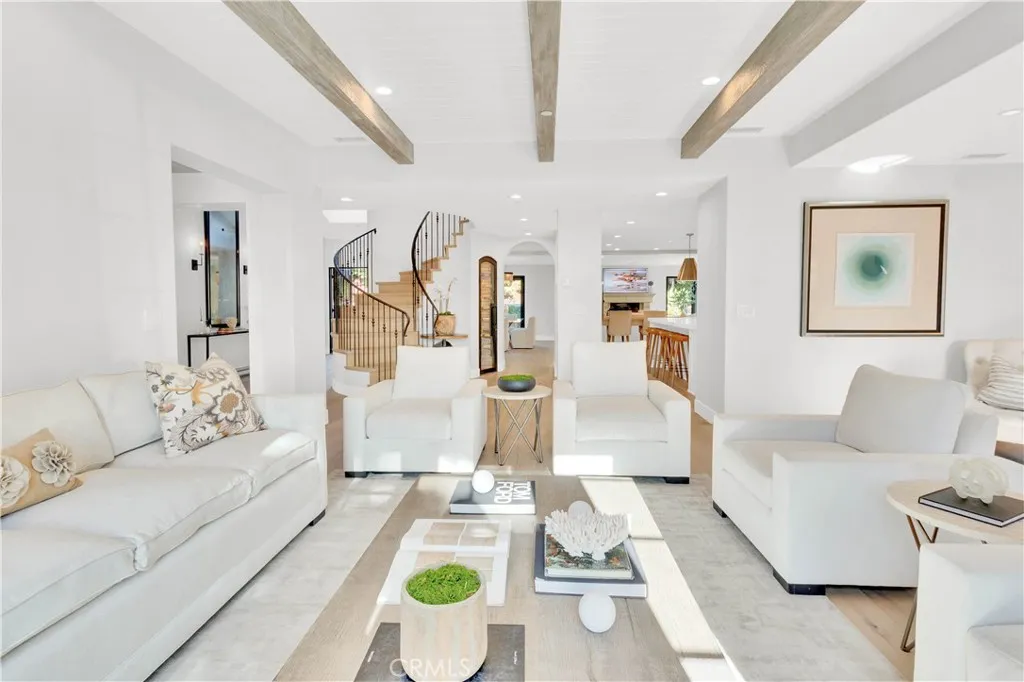 Set in one of Newport Beach’s most desirable, walkable neighborhoods—known as the Port Streets—with an elementary school at the heart of the community, this custom home built in 2013 offers refined, comfortable living with thoughtful design and elevated finishes throughout. This 4-bedroom, 4.5-bathroom home includes an additional flex space and is filled with natural light, enhanced by two large skylights and Fleetwood aluminum windows and sliding doors that create seamless indoor/outdoor living. Provenza wood floors run throughout the interior, creating warmth and continuity. The exterior is clad primarily in Beaumaniere French limestone and features double custom arched entrance doors. Inside, the main living areas feature architectural beams, high ceilings, a wrought-iron circular staircase, and three interior fireplaces, including a carved stone fireplace, a fireplace with a reclaimed wood mantel sourced from Wisconsin, and an electric fireplace in the great room. The kitchen showcases a Venatino Statuario honed marble island, high-end appliances by Miele, Thermador, GE, and Bosch, a built-in Miele coffee system, and an adjacent wine room. The yard features extensive stonework, an Italian marble fireplace, a built-in barbecue area, an exercise swim spa, a jacuzzi, a waterfall, artificial grass, mature lemon and lime trees, magnolias, privacy hedges, and built-in speakers. Designed for comfort and flexibility, the home offers separate living and family rooms, surround sound, and a seamless flow from kitchen to dining to backyard. Upstairs, the flex space functions as a library and sitting room that can easily convert into a fifth bedroom or guest suite. The primary suite includes a walk-in closet and ensuite bathroom with a raised vanity, a spacious shower enclosure, and a soaking tub. Additional upgrades include a whole-house EWS water filtration system, PEX piping, tankless water heater, Baldwin hardware, Visual Comfort interior lighting, Dana Creath exterior lighting, a dedicated audio closet, and a 5-foot built-in safe. Storage includes a fully decked attic, custom garage organizers, and a dedicated storage room. HOA amenities include community pools, clubhouses, parks and playgrounds, sports fields, greenbelts and walking trails, basketball courts, and convenient access to Fashion Island, CDM beaches, Newport Center, Back Bay hiking, the 73 Toll Road, and the 405, 55, and 5 freeways.