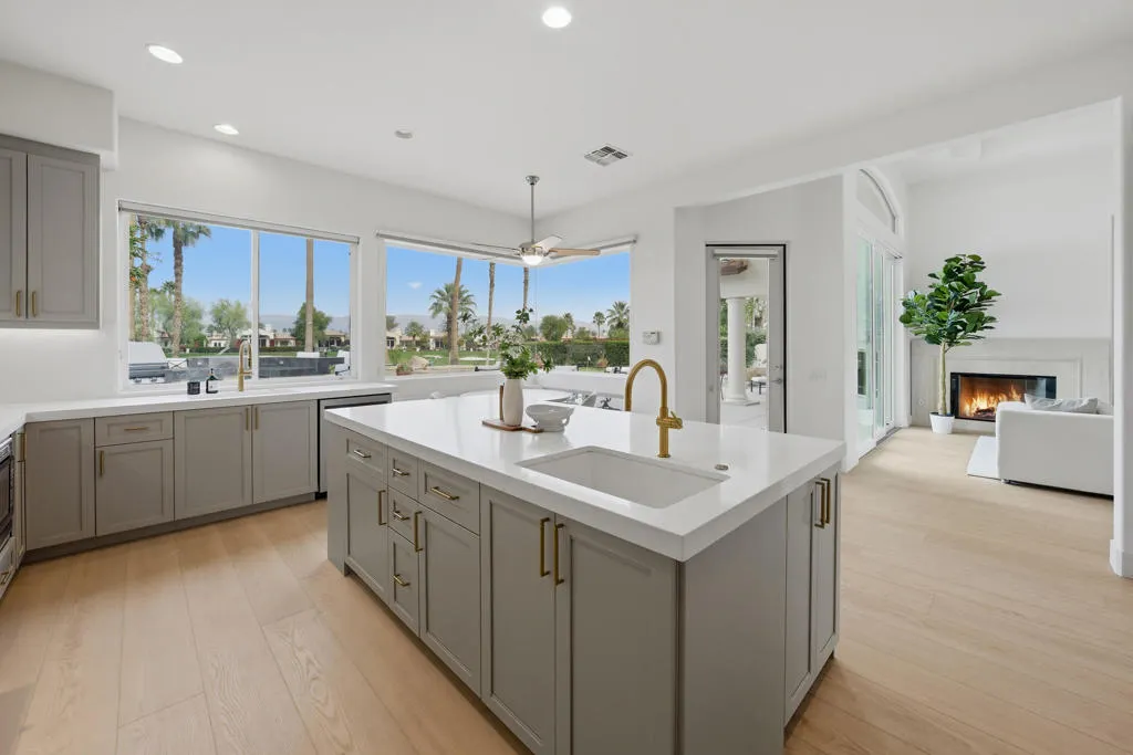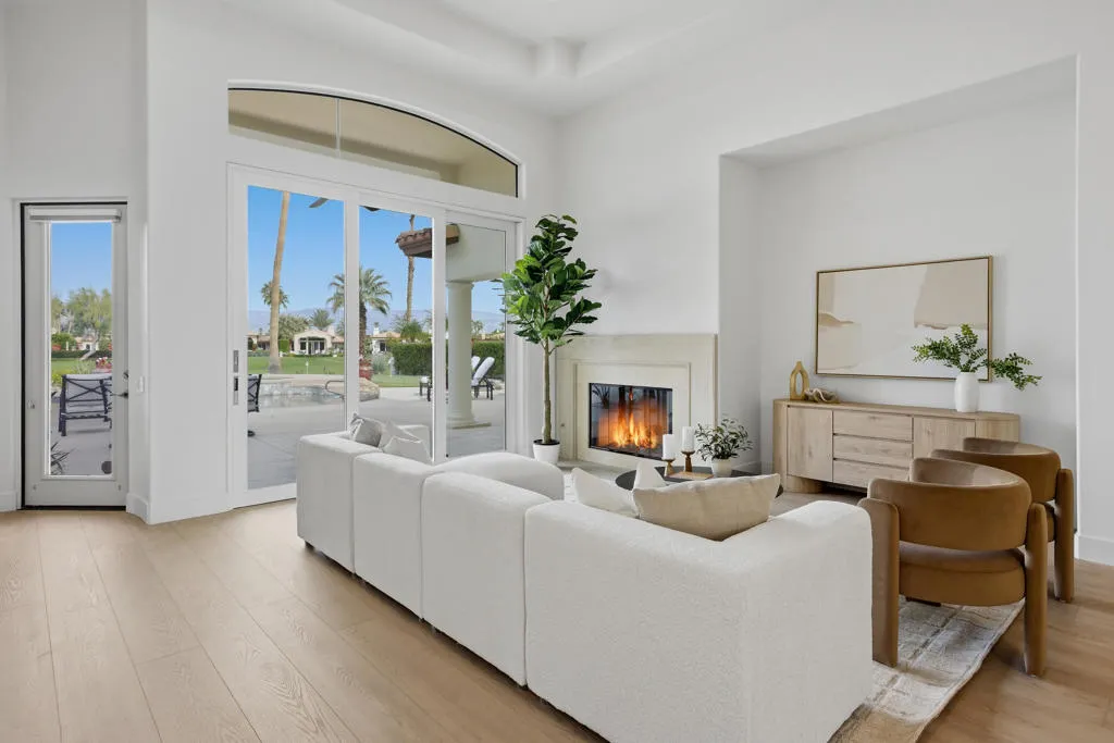 Simply Stunning! There is no better way to describe this masterfully remodeled estate in the prestigious Rancho La Quinta Country Club. Positioned on an expansive, elevated 13,000 sq. ft. lot, this 3,556 sq. ft. residence offers commanding views of the serene lake and the lush fairways of the Jerry Pate course.Renovated from the from the front gate to the back of the lot, the home exudes bespoke luxury. A uniform design palette of creamy whites, rich textures, and perfect proportions creates a seamless transition between the interior and the exterior. Inside, natural wood-look luxury plank flooring leads you to a chef's kitchen featuring soft-close cabinetry, quartz countertops, and a striking backsplash that soars to the ceiling. The adjacent great room, anchored by a custom bar with herringbone detailing and gold hardware, features a massive new slider that invites the outdoors in.The grounds have been reimagined for the ultimate entertainer, featuring a putting green, a firepit, and multiple social zones including an outdoor fireplace and a romantic sunset viewing area. The primary suite offers a professionally designed closet, while the handsome double-door office provides a built-in workspace and a hidden Murphy bed. Guests will enjoy total privacy in the detached casita, complete with its own fireplace and kitchenette. Professionally furnished and turnkey-ready, this is desert living at its finest.Interior HighlightsGourmet Kitchen: New quartz surfaces, designer cabinetry, and high-end finishes.Great Room: Features a custom floor-to-ceiling herringbone bar and seamless slider-door access to the patio.Versatile Spaces: Executive office with custom built-ins and Murphy bed; primary suite with a designer walk-in closet.Guest Casita: A private, free-standing retreat with a kitchenette and fireplace.Outdoor OasisElevated lake and fairway views framed by the Chocolate Mountains.Newly expanded social spaces including a BBQ bar, firepit, and putting green.Refined landscaping and hardscaping mirror the home's interior sophistication.Available professionally furnished (outside of escrow), this estate is ready for its next chapter. Join us for an Exclusive Viewing: Sunday, Feb 1st, 12-3pm.