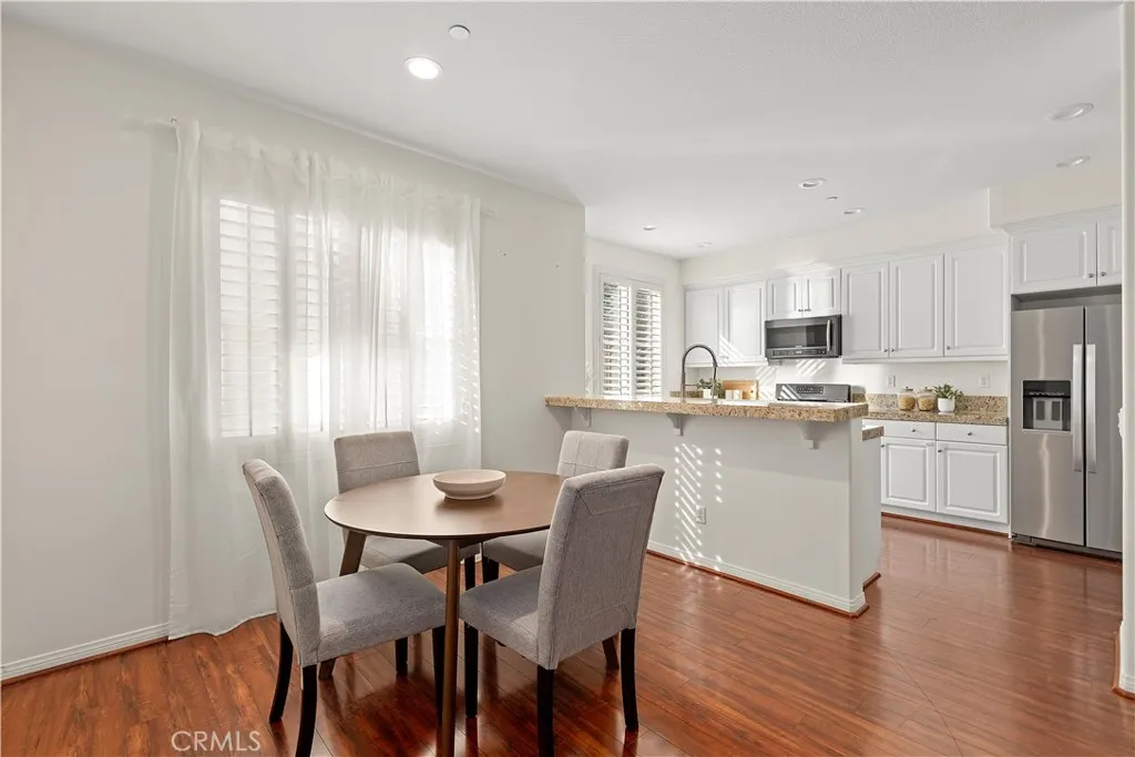 Welcome to this elegant multi-level condo offering 3 bedrooms and 3 bathrooms across 1,622 sq ft of refined living space. Built in 2009, this thoughtfully designed home blends modern comfort with timeless style. The entry opens to a dramatic formal living room with soaring ceilings and expansive windows overlooking the private front patio. The inviting family room features a cozy fireplace and flows seamlessly into the sunlit dining area. The chef’s kitchen impresses with granite tile countertops, stainless-steel appliances, recessed lighting, generous cabinetry, and a walk-in pantry. Upstairs, two guest bedrooms share a well-appointed full bath, while a conveniently located laundry room adds everyday ease. The primary suite is a true retreat, showcasing an oversized walk-in closet, spa-inspired bathroom with dual sinks, soaking tub, and separate shower, plus a private balcony ideal for relaxing evenings. Additional highlights include laminate flooring throughout most of the home, double-pane windows, elegant wood shutters, bullnose corners, and an attached two-car garage with ample storage. Located in the desirable Riverbend Community, residents enjoy a resort-style pool and spa, proximity to Ambriz Memorial Park, and easy access to the Santa Ana River Trail. This exceptional residence offers sophistication, comfort, and an elevated lifestyle.
