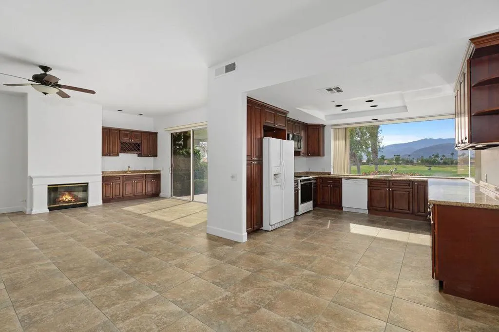Welcome to Mission Hills Country Club. Perfectly positioned on the iconic Pete Dye Golf Course. This 3 bedroom, 2 bath home offers 1,806 square feet of living space, framed by stunning golf course and mountain views. From the moment you enter, natural light fills the home, highlighting the open layout and seamless indoor-outdoor connection. The upgraded kitchen features generous storage, ideal for everyday living and entertaining alike. The spacious living room is accented by a stylish wet bar, creating an inviting setting. Expansive windows and glass doors capture the sweeping double fairway vistas and dramatic mountain backdrops, bringing the beauty of the outdoors inside. The primary suite serves as a tranquil retreat, while two additional bedrooms provide versatility for guests, a home office, or family accommodations. Residents of Mission Hills Country Club enjoy world-class amenities, including championship golf, renowned tennis and pickleball facilities, fitness center, and a beautifully remodeled clubhouse that serves as a vibrant hub for social and recreational activities. Memberships are available. Just minutes from world-class dining, shopping, and entertainment, this home offers the perfect balance of privacy, luxury, and convenience.