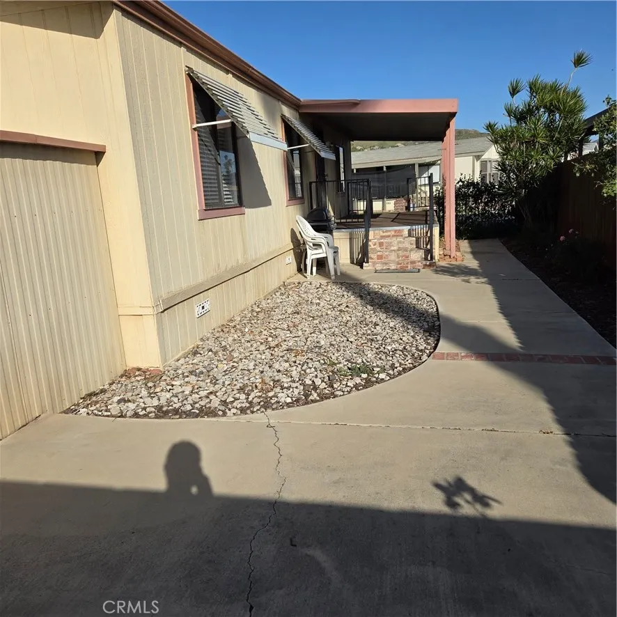 PRICE REDUCED!! Welcome home to a lovingly cared for, ready to move into, manufactured home in a friendly all-ages gated community. Cathedral ceilings and many large windows give the home spaciousness and great natural light. Upgrades include the two-year-new roof, water heater, dishwasher, disposal, sinks and faucets in kitchen and both baths, light fixtures and a brand new washer. The living room, dining area, kitchen and hall have vinyl plank flooring. There is an automatic timer for the drip system in the large back yard's planting area and for the front lawn. A roomy storage shed is in the back yard. Carport is partially paved in bricks for a nice patio area, in addition to the large covered front deck. Bravo Estates has a large and lovely clubhouse, pool, RV storage and more.