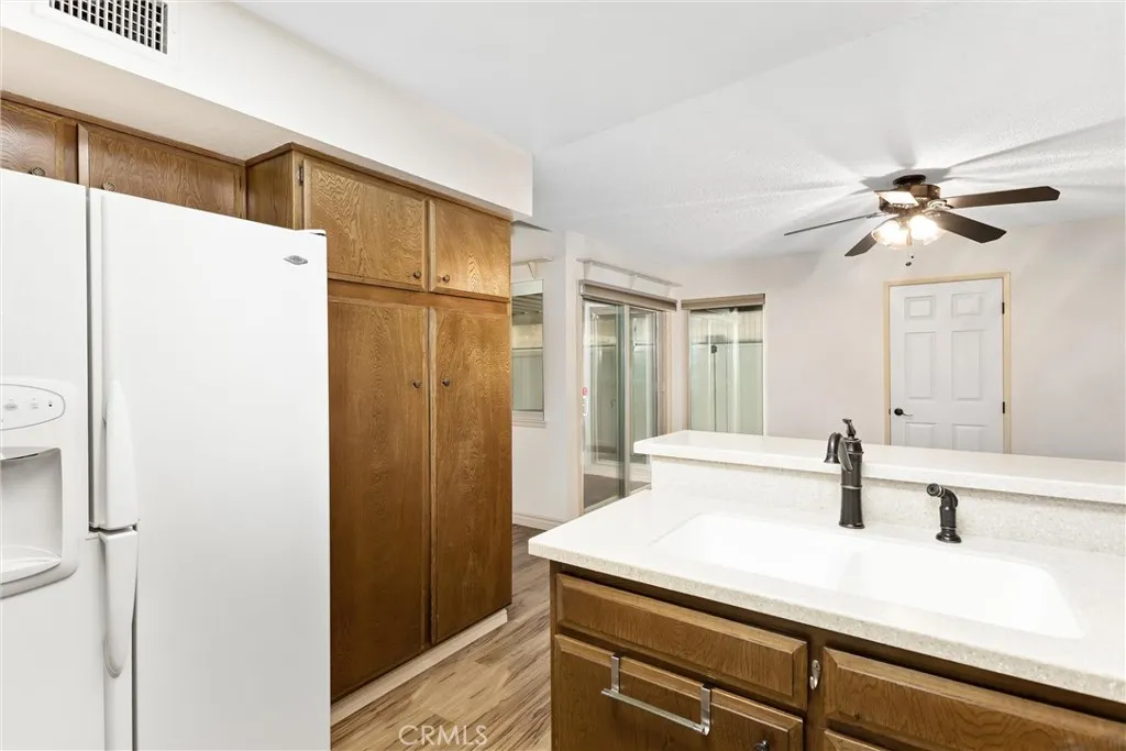 Location, location, location! Nestled in the desirable Carefree Village community of Redlands, this charming single-story condo offers comfort and convenience. The inviting living room features a cozy fireplace & an extra flexible room with a closet & window that may easily be used as a 3rd bedroom or home office. The dining room & kitchen w/corian counters(refrigerator included) provide direct access to the aluminum covered back patio with pull down blinds(for extra privacy) & 240V outlet. Enjoy thoughtful upgrades throughout including a newer tile roof (2019), vinyl flooring, dual-pane windows, ceiling fans, shutters, pull down blinds, & tankless water heater. The home includes an attached two-car garage with direct access & a spacious laundry/utility room. Community amenities include a pool, tennis courts, and clubhouse; with trash, water, and sewer included in the HOA. Conveniently located near shopping, the University of Redlands, the 10 freeway, & Downtown Redlands.