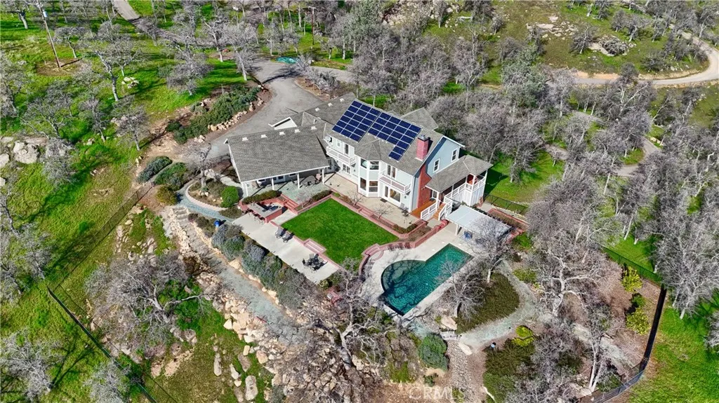 CUSTOM HOME PERCHED effectively capturing breathtaking panoramic views, this beautifully appointed 3-bedroom, 4-bath residence offers 3,873 Sq. Ft of light-filled living space designed for comfort and entertaining. A welcoming front porch sets the tone, while expansive windows throughout frame stunning hillside and valley vistas. The home features generous living and dining areas, a well-appointed kitchen, and seamless indoor-outdoor flow. Granite counter tops W/ various areas of storage, walk-in pantry, exercise room plus large attic access. Custom lighting accentuates all the well placed built-ins thought out this well appointed home. The resort-style pool, custom built-in BBQ, ample room for family and friends is perfect for relaxing or hosting gatherings while soaking in the scenery. Bring your green thumb for the garden area and as well as the several fruit trees to savor. Thoughtfully designed with ample space, charm, and privacy, this exceptional property offers a rare opportunity to enjoy tranquil living with unforgettable views. Call your Realtor for your private showing.