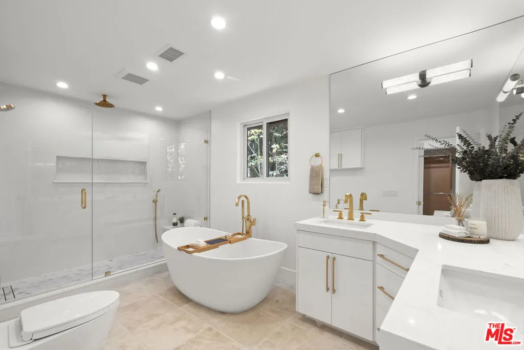 Privately gated and newly remodeled, this modern Santa Barbara Spanish home is a serene Bel Air retreat with beautiful views! 4 Bedroom / 3.5 bath residence has been thoughtfully reimagined interior with contemporary finishes and abundant natural light. Home features a primary suite on 1st floor and another on 2nd floor each with private outdoor space! Warm and inviting living spaces open seamlessly to outdoor terraces surrounded by lush landscaping, offering privacy & an ideal indoor-outdoor lifestyle. Also Available for Sale.