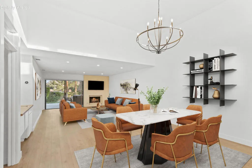 Experience elevated desert living in this beautifully remodeled 2-bedroom, 2-bath residence offering 1,184 sq ft of refined comfort, ideally positioned along the coveted Highway 74 corridor in Palm Desert. This prime location places you just minutes from El Paseo's luxury shopping and dining, premier entertainment, renowned golf, and some of the Coachella Valley's most iconic hiking trails.Designed to capture the essence of upscale desert living, the home features soaring ceilings, an abundance of natural light, and a thoughtfully curated interior. Wide-plank wood-look flooring, recessed lighting, and a sleek modern fireplace create a sophisticated yet inviting ambiance. The updated kitchen blends timeless style with character, showcasing crisp white cabinetry, generous counter space, and artisan tile accents.The spacious primary and guest suites offer comfort and privacy, while the bathrooms include elegant tilework, a walk-in shower, and classic finishes. Large sliding glass doors extend the living space to a private patio, ideal for morning coffee or evening relaxation while enjoying lush greenbelts, swaying palm trees, and mountain views--a true indoor-outdoor desert lifestyle.Situated within the prestigious gated community of Indian Hills, residents enjoy resort-style amenities including multiple pools and spas, tennis courts, pickleball courts, and impeccably maintained grounds. Whether as a full-time residence, seasonal escape, or investment opportunity, this home delivers the perfect blend of luxury, location, and lifestyle that defines Palm Desert living.