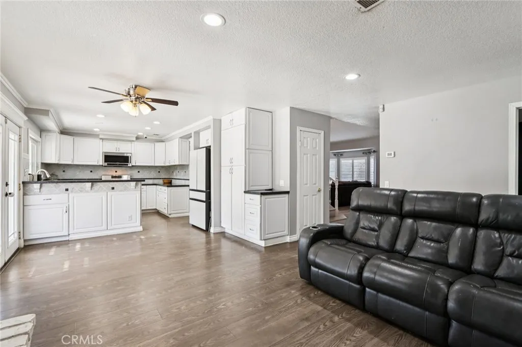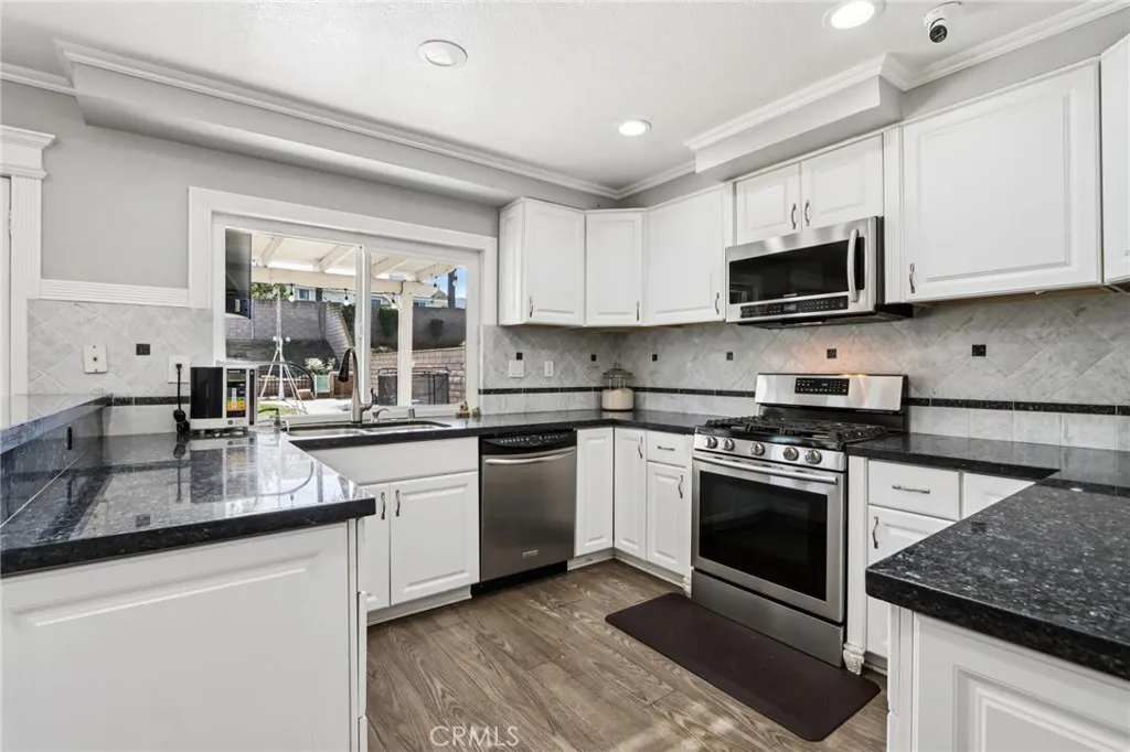 Welcome to this stunning 5-bedroom, 3-bath home designed for both comfort and entertaining. The downstairs bedroom and full bath are perfect for guests, while two open living areas filled with natural light create inviting spaces for family gatherings or cozy evenings at home. The large kitchen is ideal for home-cooked meals or hosting friends, offering plenty of space for everyone to gather. The master suite features a fireplace, his-and-her sinks, a vanity, soaking tub, and a walk-in closet. Upstairs, a loft/den complements the four additional bedrooms, providing versatile space for work, study, or a playroom. Step outside to your private backyard oasis, complete with a large pool, relaxing jacuzzi, and play set. The pool includes a removable safety fence to keep pets and children safe. Energy-conscious homeowners will appreciate Tesla Solar and plug charger, offering long-term efficiency and savings. The custom man cave garage provides a unique space for hobbies, game nights, or a private retreat. Within walking distance to Ben Franklin Elementary and close to other top-rated Corona schools, shopping, dining, and freeway access, this home perfectly combines space, style, and convenience ready to welcome you home. *** SELLER WILLING TO HELP WITH CLOSING COSTS ***