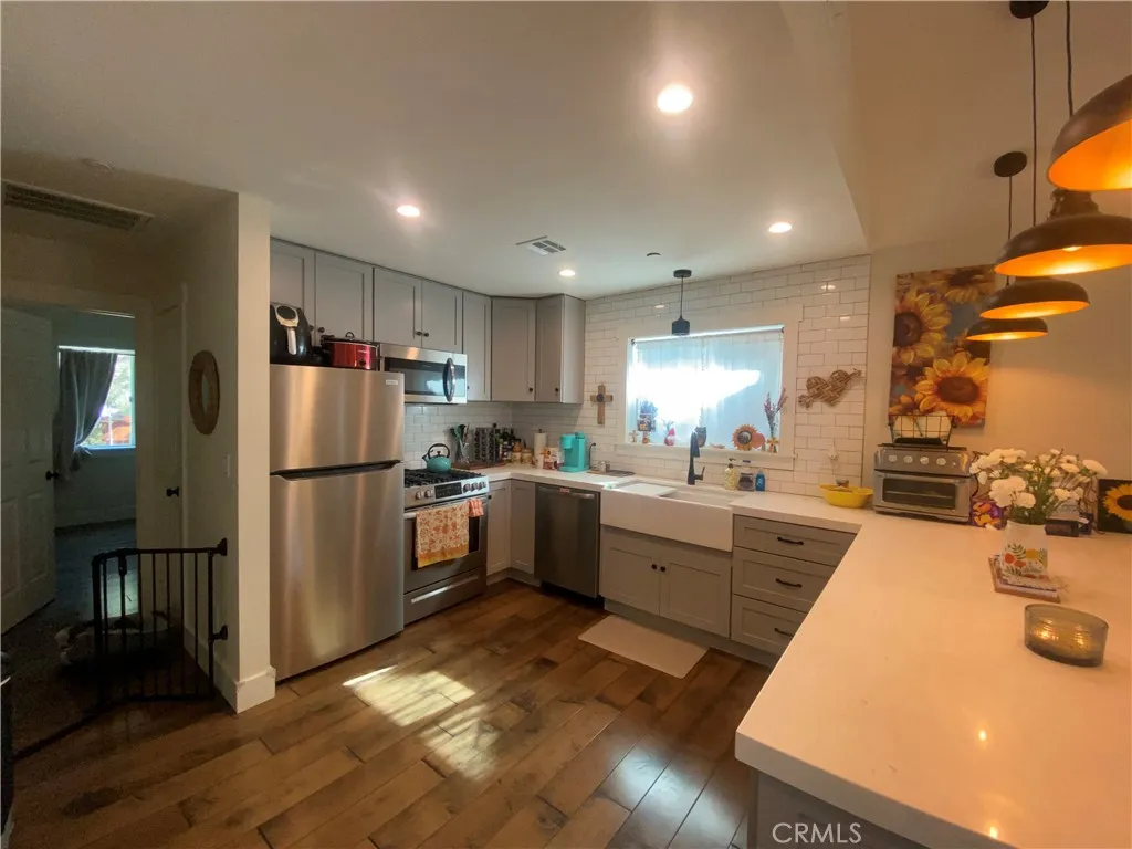 This is an adorable 3 year old cottage amongst the Pines in the heart of Big Bear City. Walking into this quaint home with engineered hardwood flooring throughout, Great natural Light Pay almost nothing for your electric, as this home is being sold partially furnished and is equipped with fully paid solar, and includes an Electric Car Charging Station. Kitchen has amazing quartz countertops, and a pendant over the breakfast bar. Energy Star appliances are included. Bathroom has tiled shower with upgraded frameless shower door. Home is equipped with washer and dryer interior closet hookups lovely fireplace, central air, vaulted ceilings, with an attached 1 car extra long garage. Fully landscaped with synthetic grass, flower beds, all low maintenance. Sit on the front porch and view the surrounding mountains, enjoying the peace and tranquility of nature. Most furnishings are available.